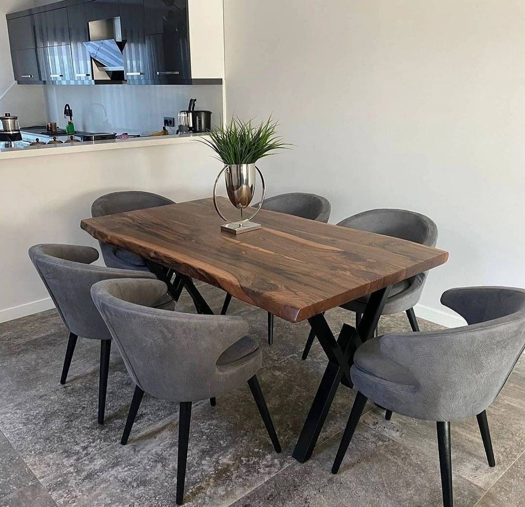 Walnut Dining Table for your living room or kitchen. Custom made walnut wood dining table with dark brown patterns. For this table, we combine two or three part of three together. Unique, special design with soft edges and handmade production just for you, your home and your kitchen.