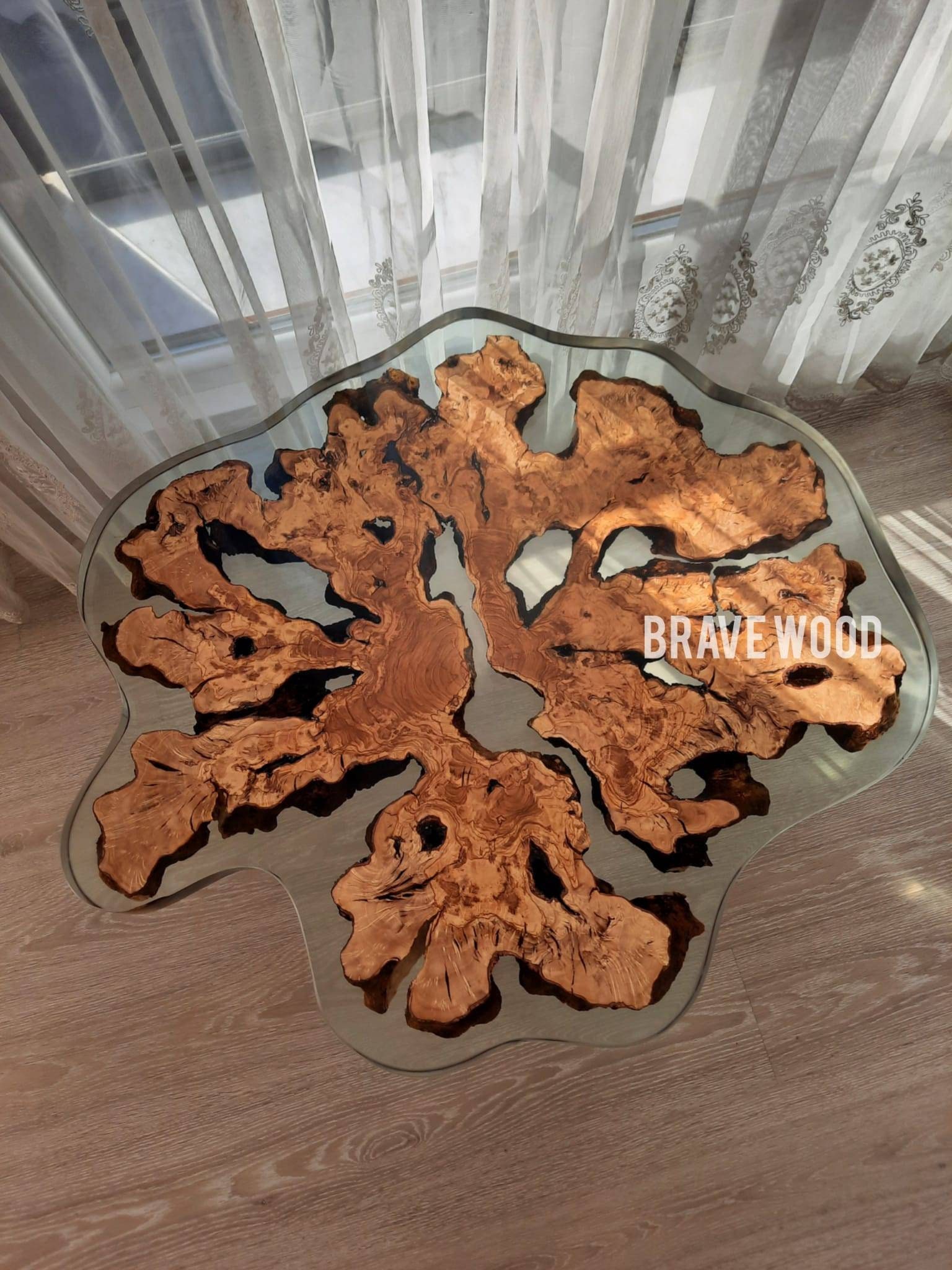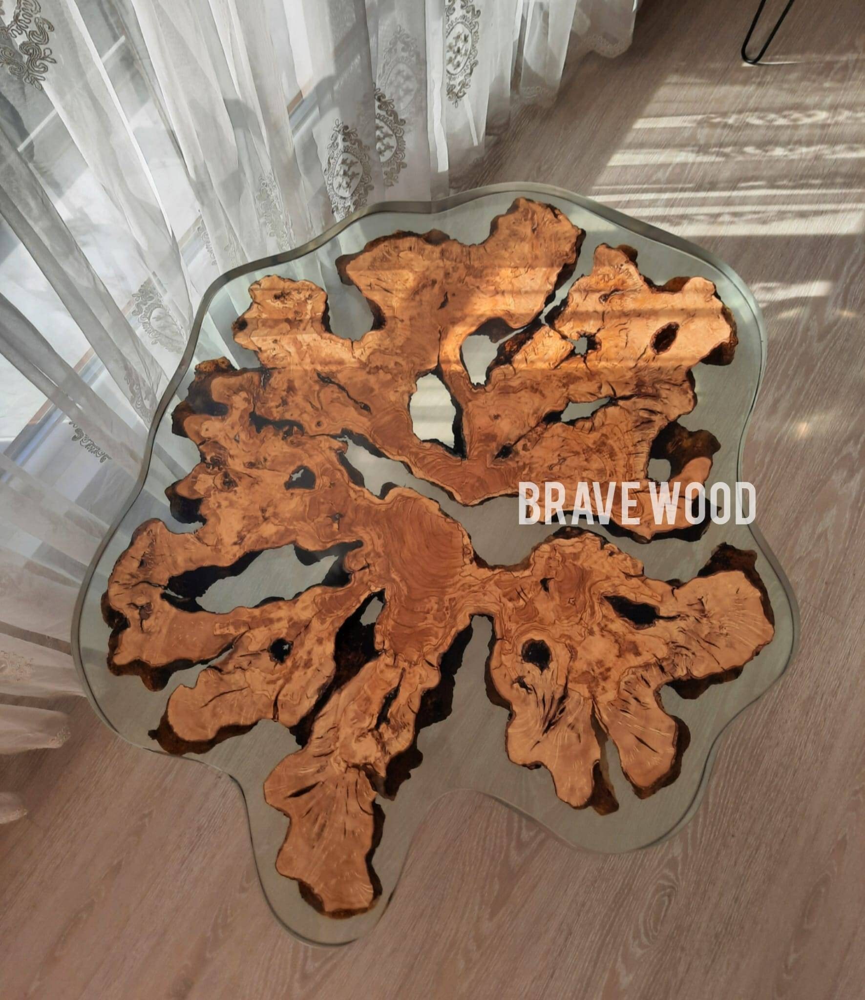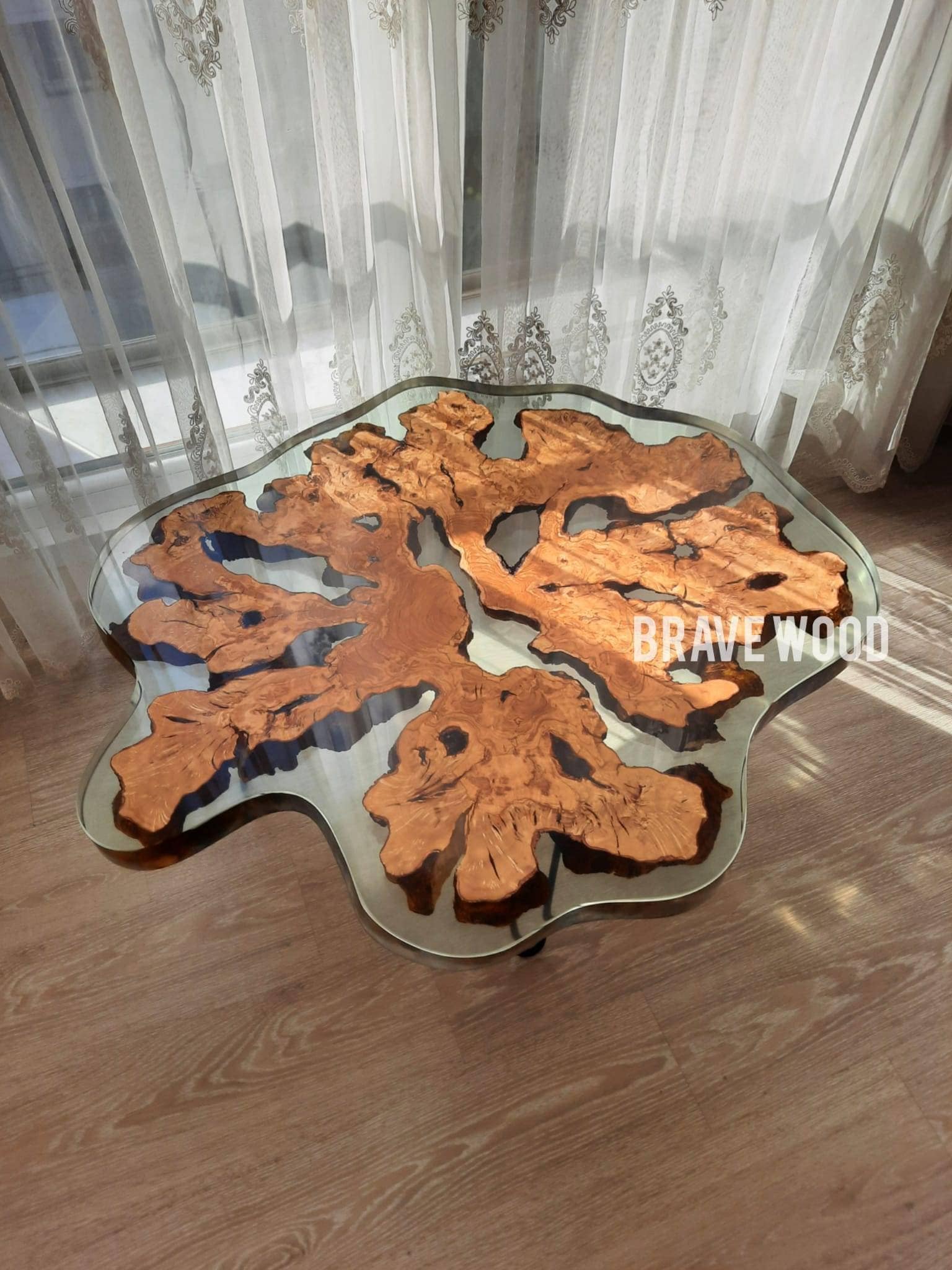The beauty of ultra-transparent epoxy one-piece magnificent olive wood with epoxy