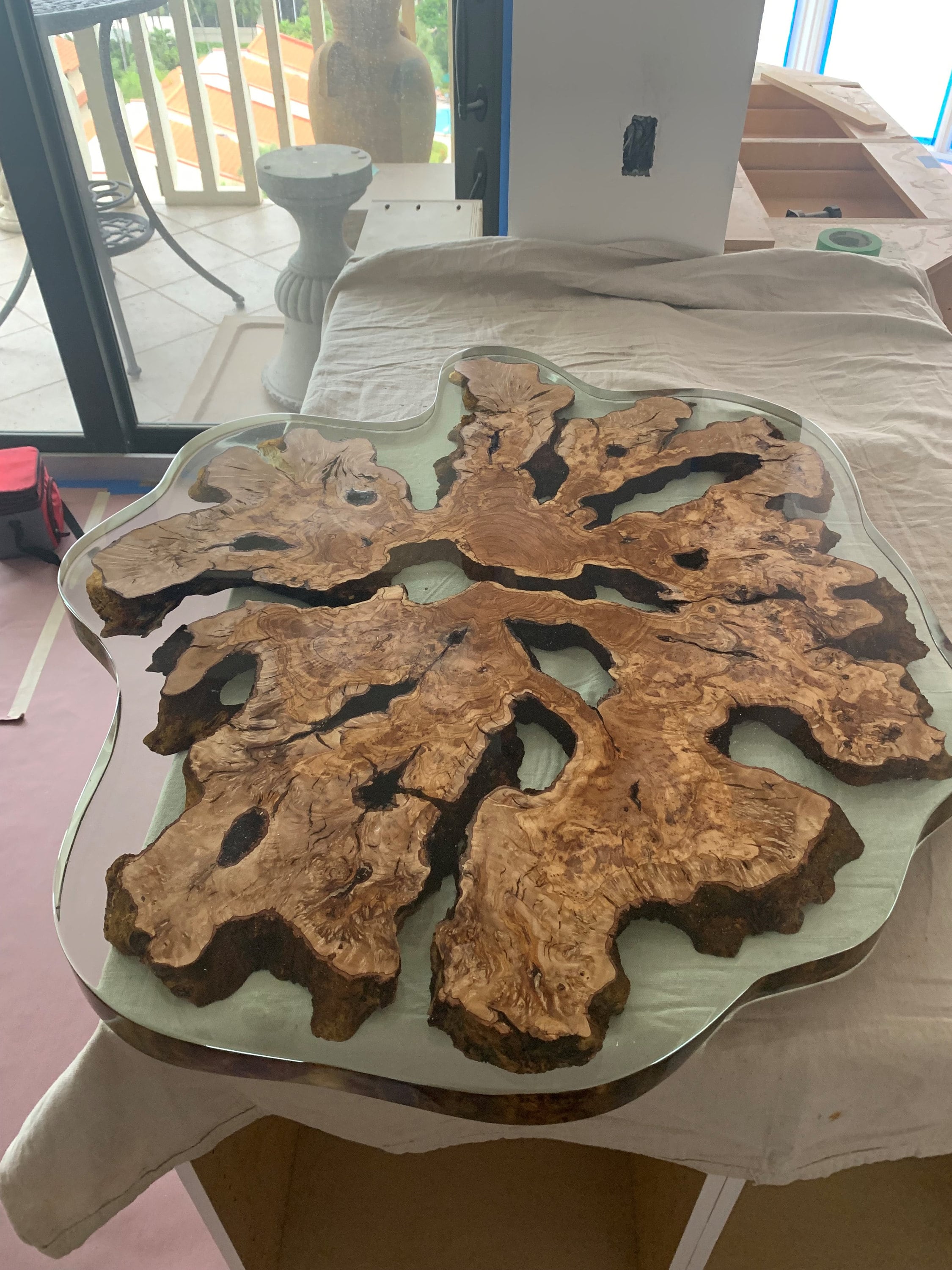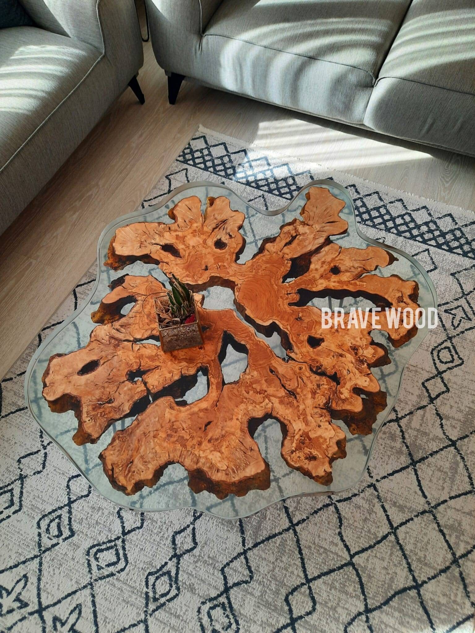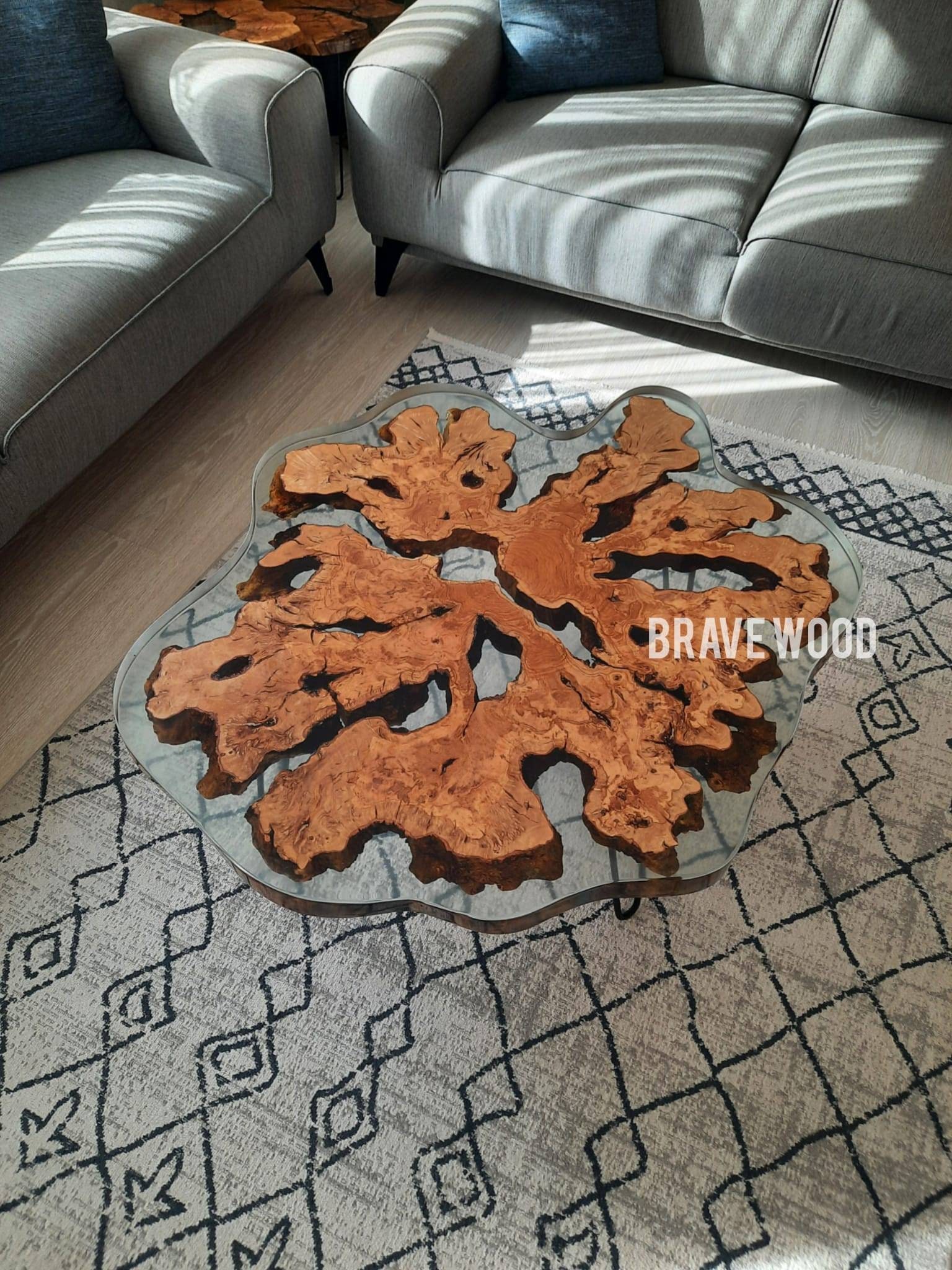 The beauty of ultra-transparent epoxy one-piece magnificent olive wood with epoxy