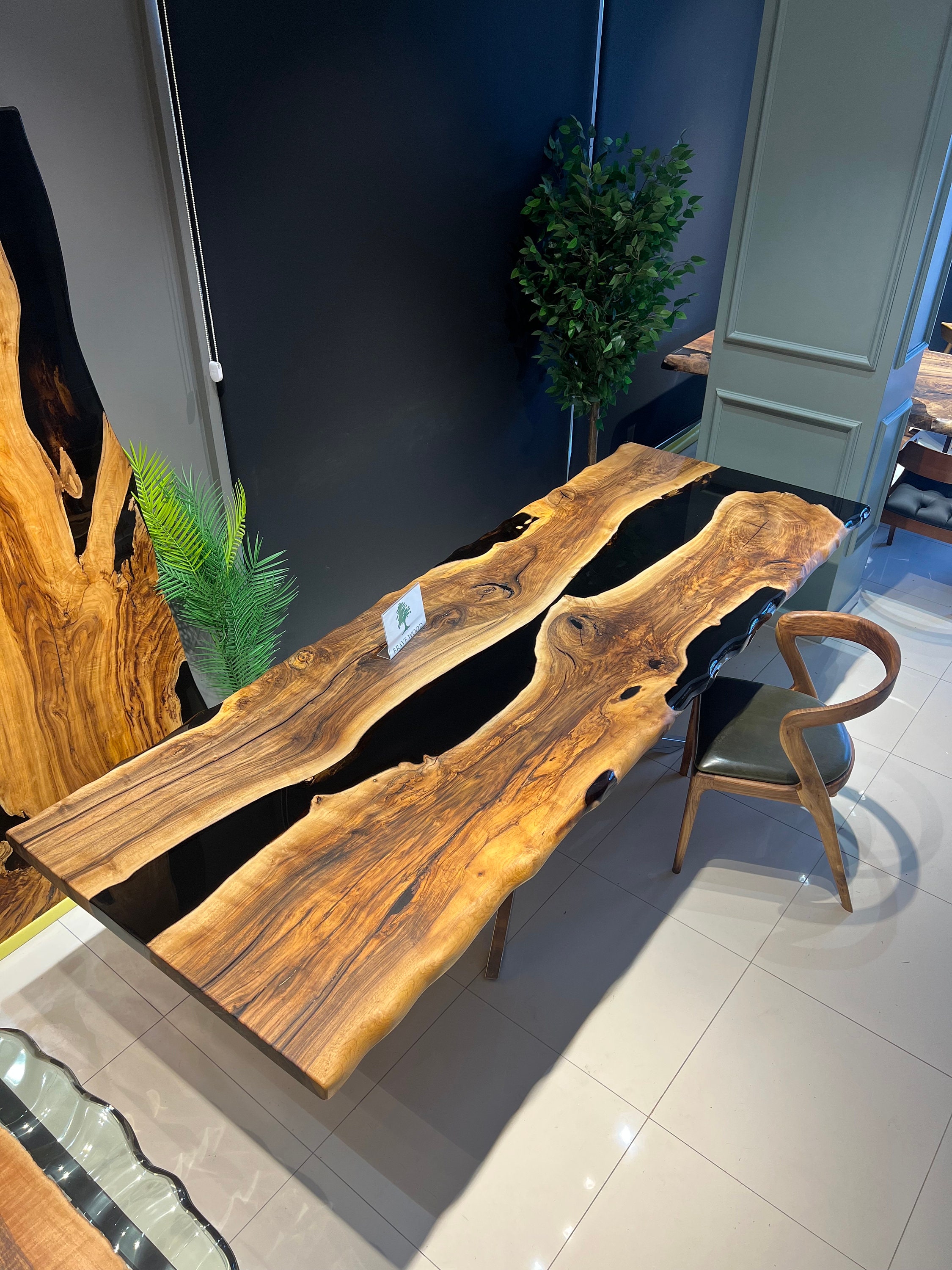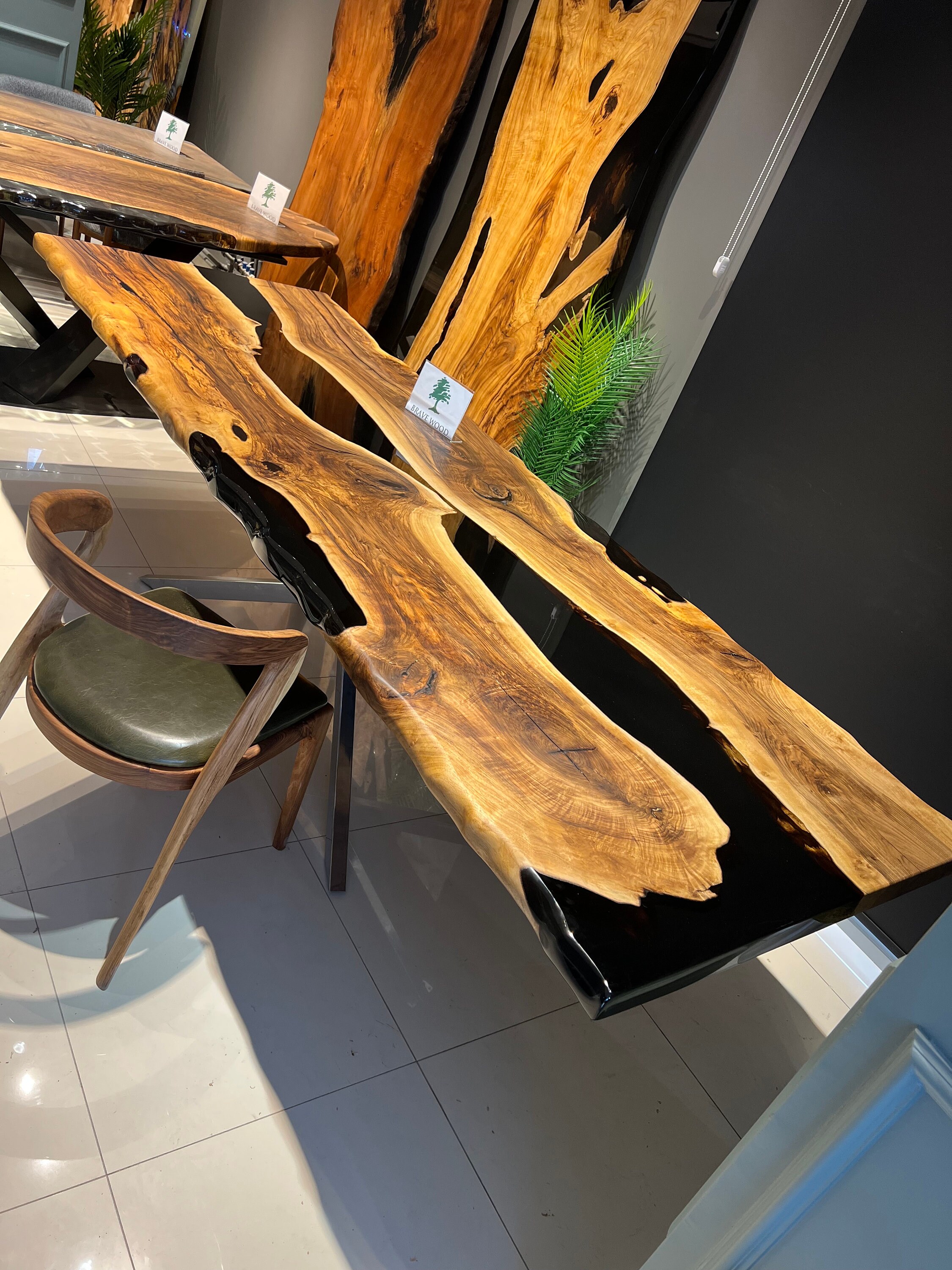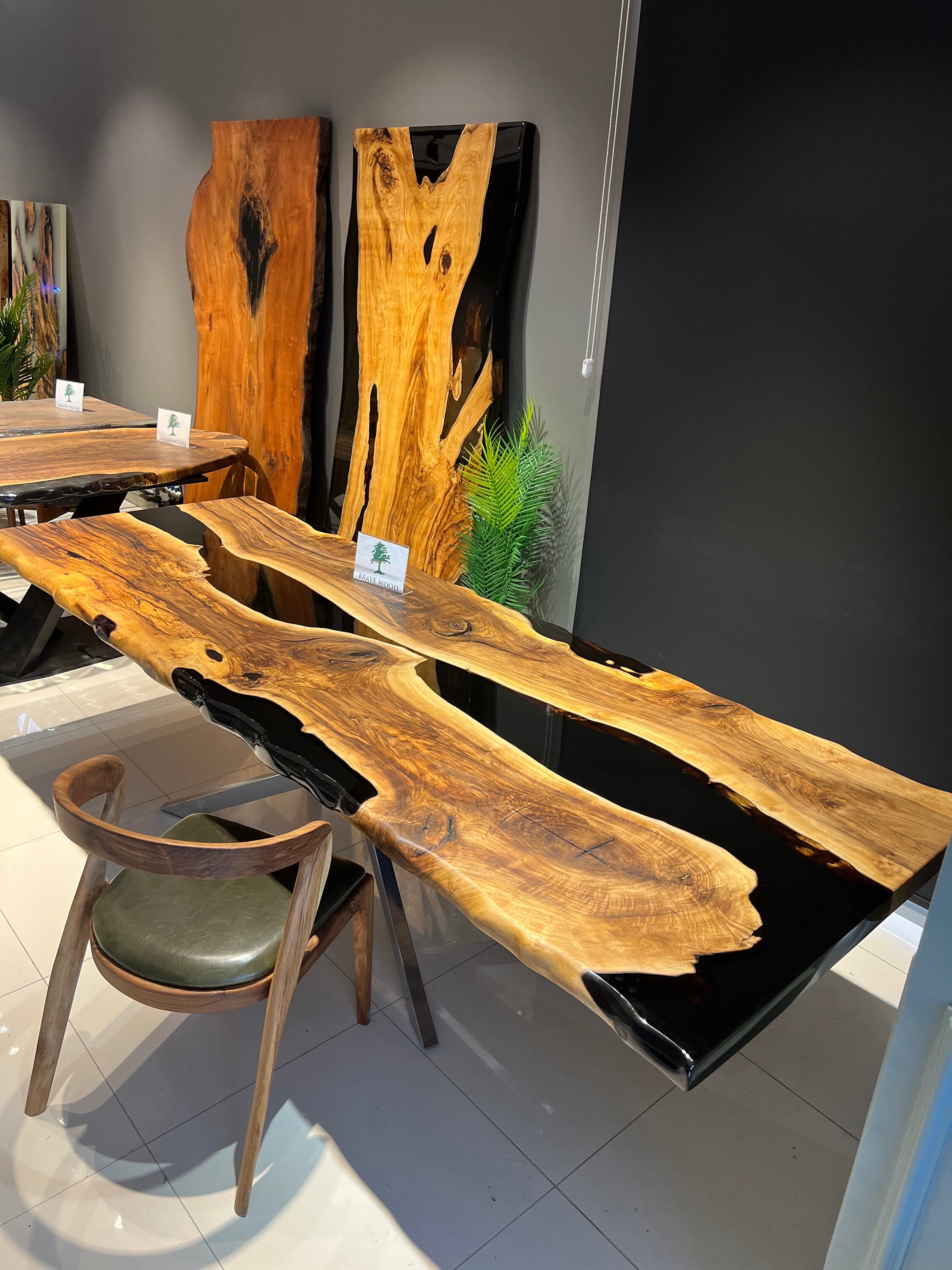This table! I can’t tell you enough how breathtaking it is! Pictures DO NOT do it justice! It looks 3D as the colored epoxy sits at the bottom which I wasn’t expecting! The fact that I was able to design this makes it extra special! He was sooo patient as he helped me make this have the olive wood style I like but with Walnut as I needed darker wood. Can’t say enough how much I love it!! ❤️❤️