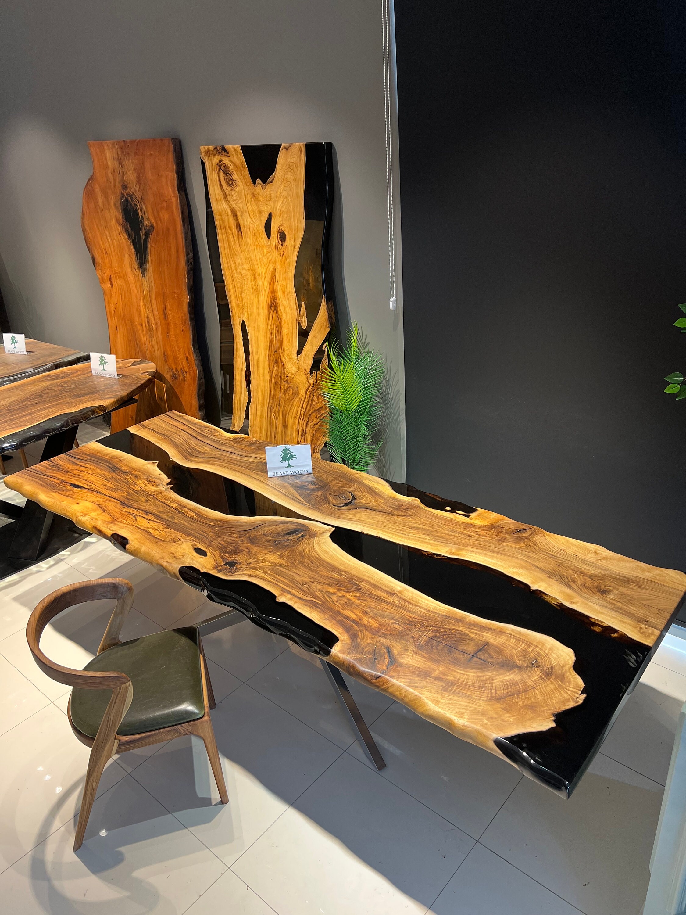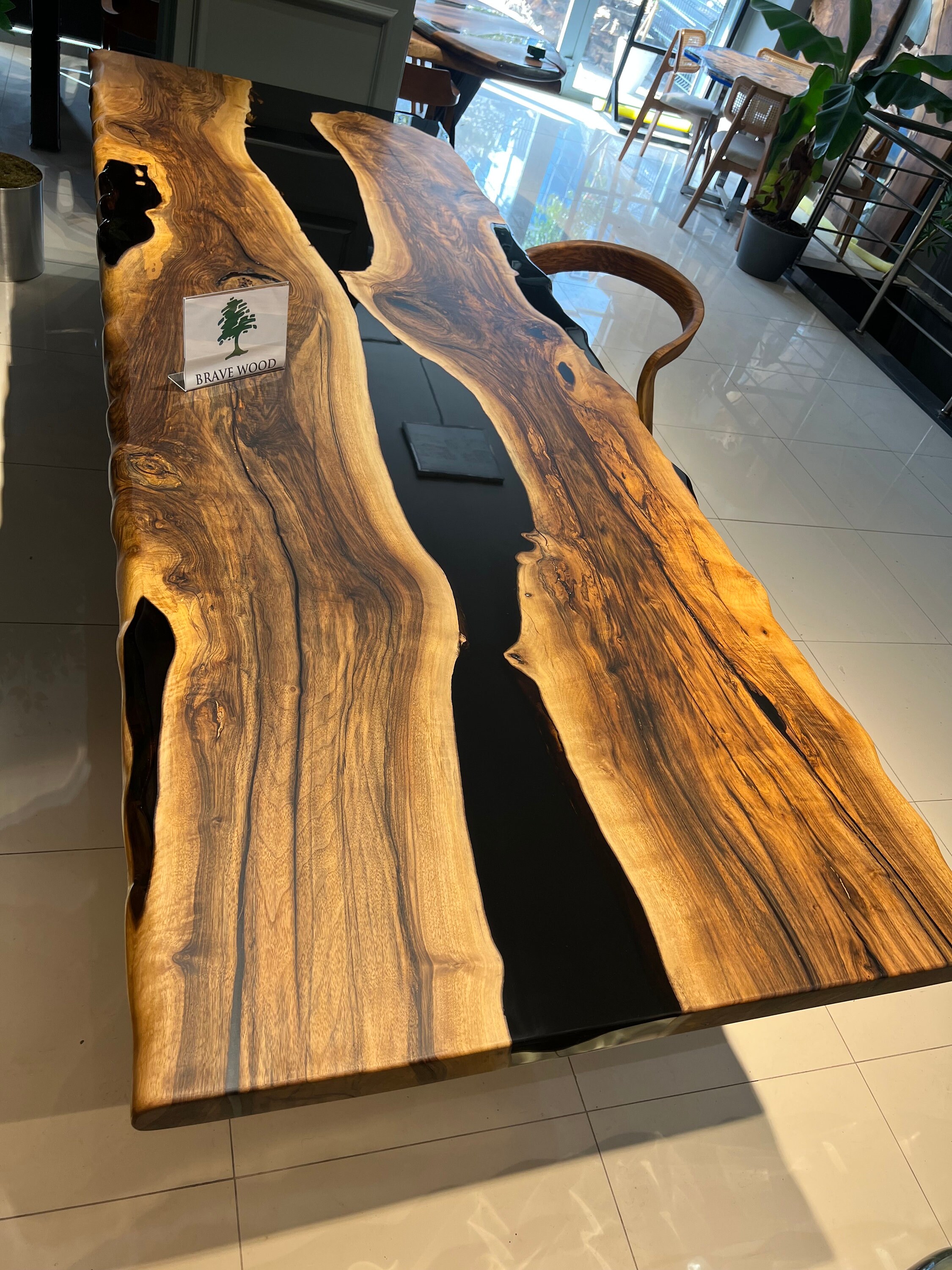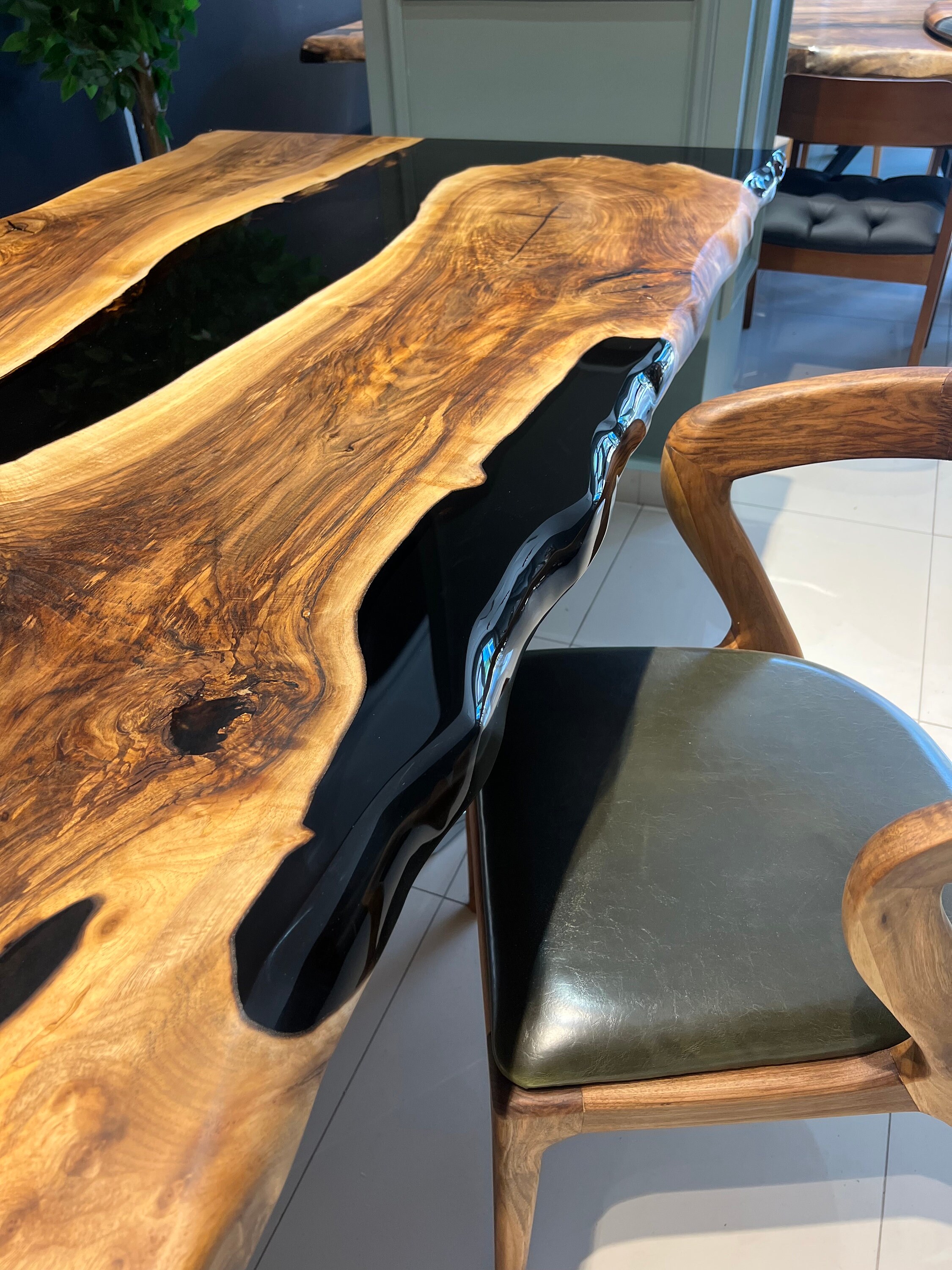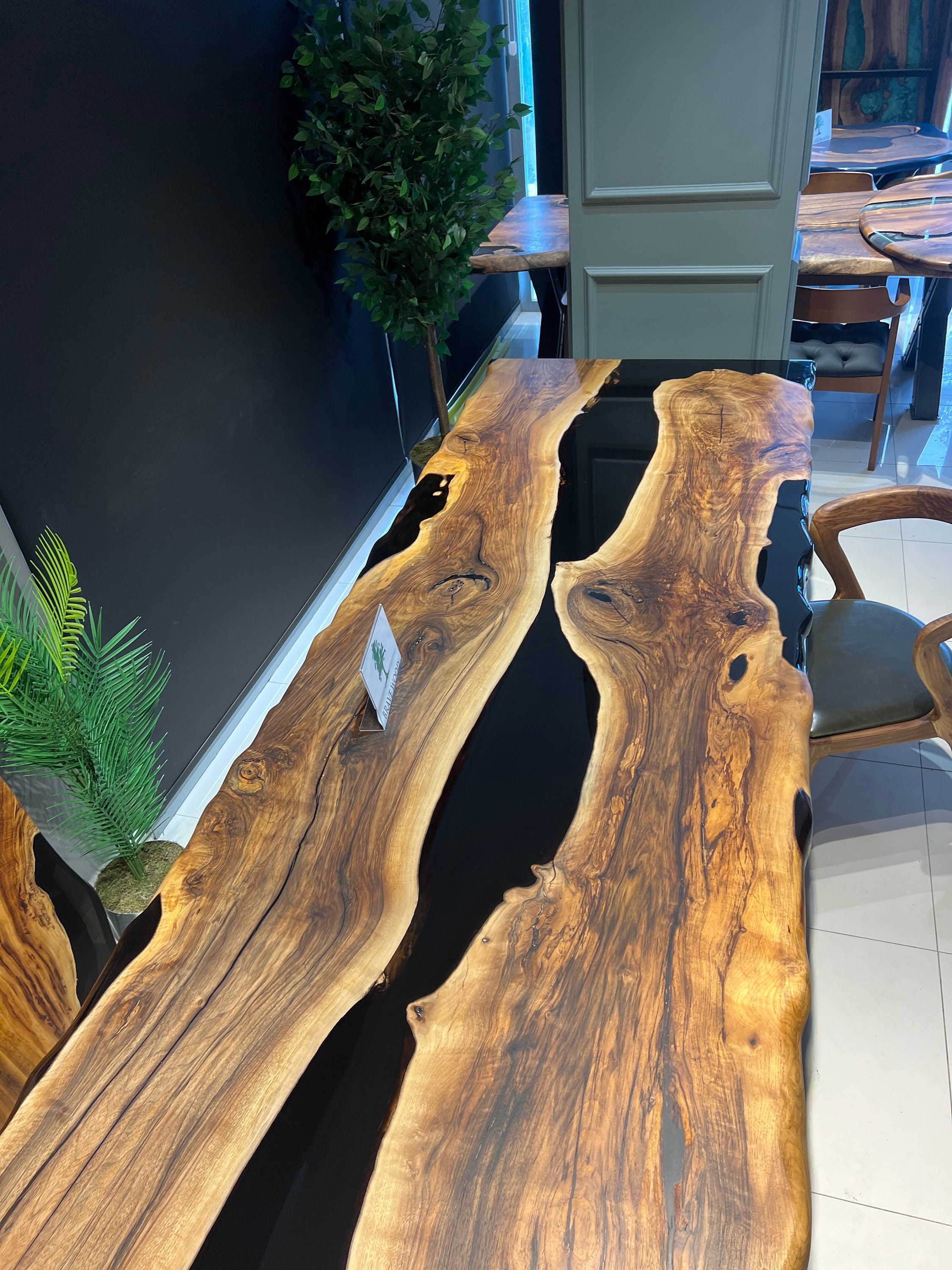 This table! I can’t tell you enough how breathtaking it is! Pictures DO NOT do it justice! It looks 3D as the colored epoxy sits at the bottom which I wasn’t expecting! The fact that I was able to design this makes it extra special! He was sooo patient as he helped me make this have the olive wood style I like but with Walnut as I needed darker wood. Can’t say enough how much I love it!! ❤️❤️