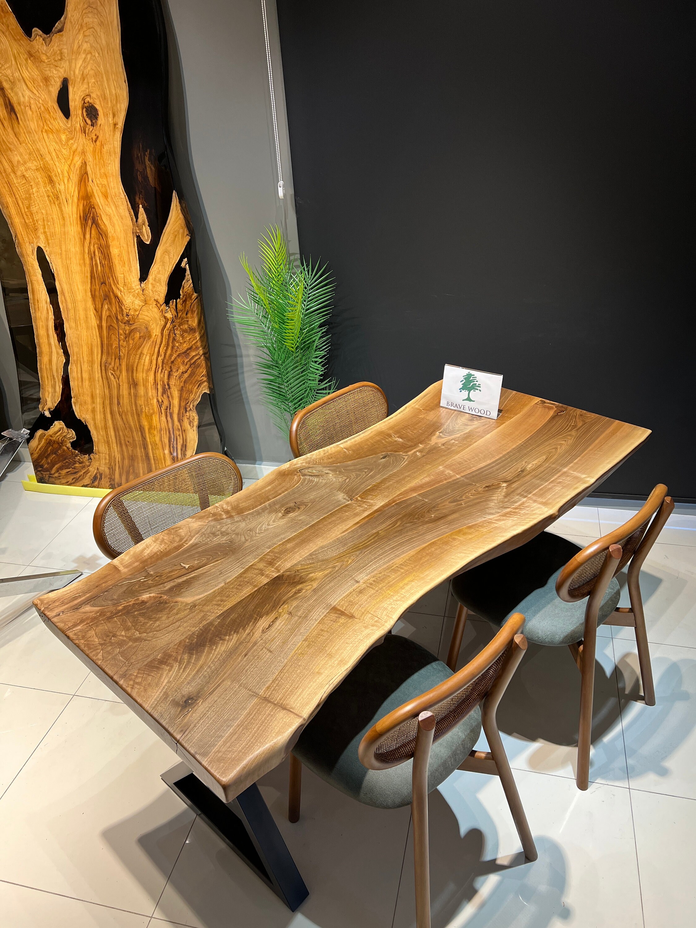 Walnut Dining Table for your living room or kitchen. Custom made walnut wood dining table with dark brown patterns. For this table, we combine two or three part of three together. Unique, special design with soft edges and handmade production just for you, your home and your kitchen.