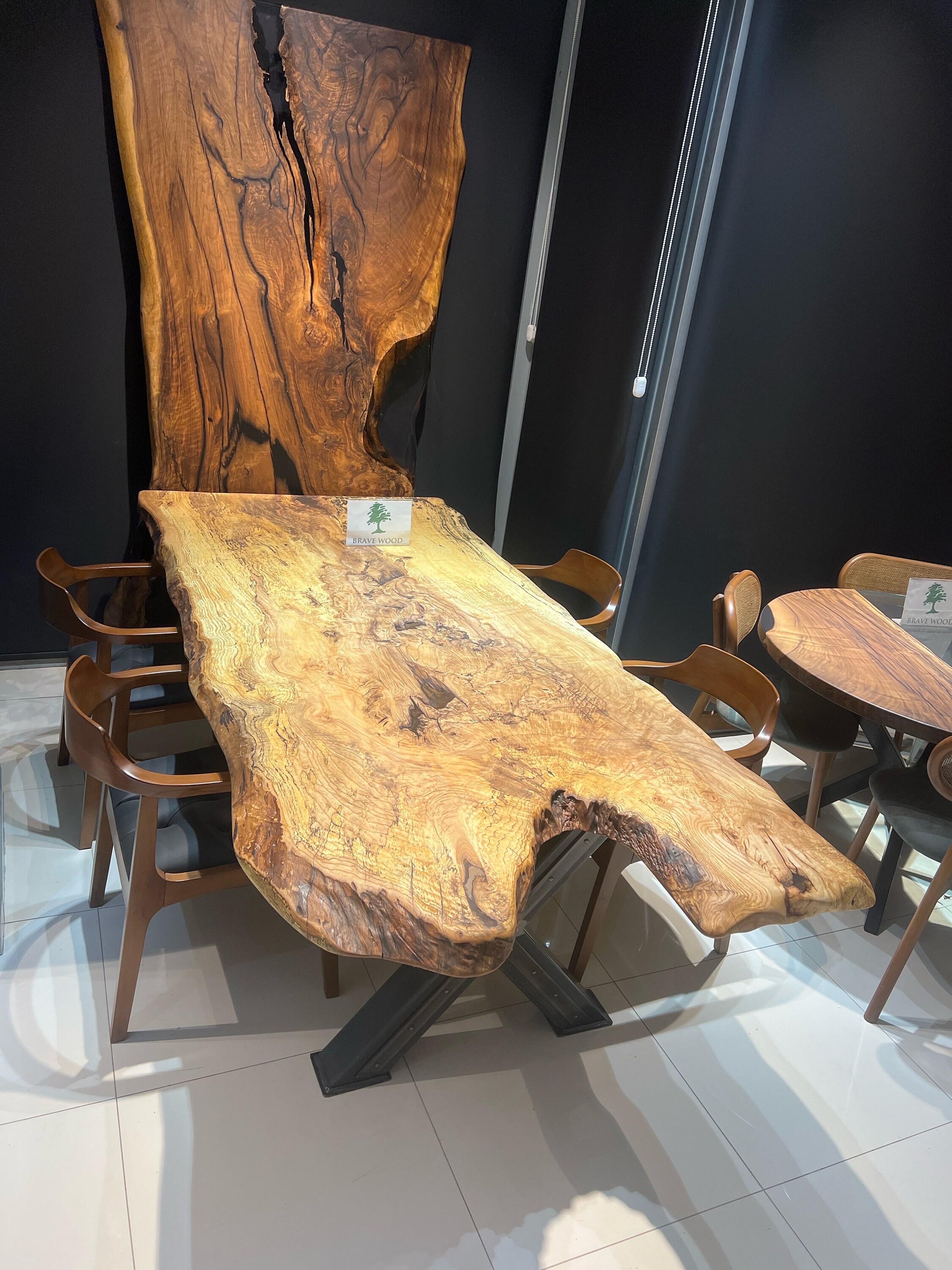 Dining Table for your living room or kitchen. Custom made wood dining table with clear epoxy like river pattern. Unique, special design with soft edges and handmade production just for you, your home and your kitchen.