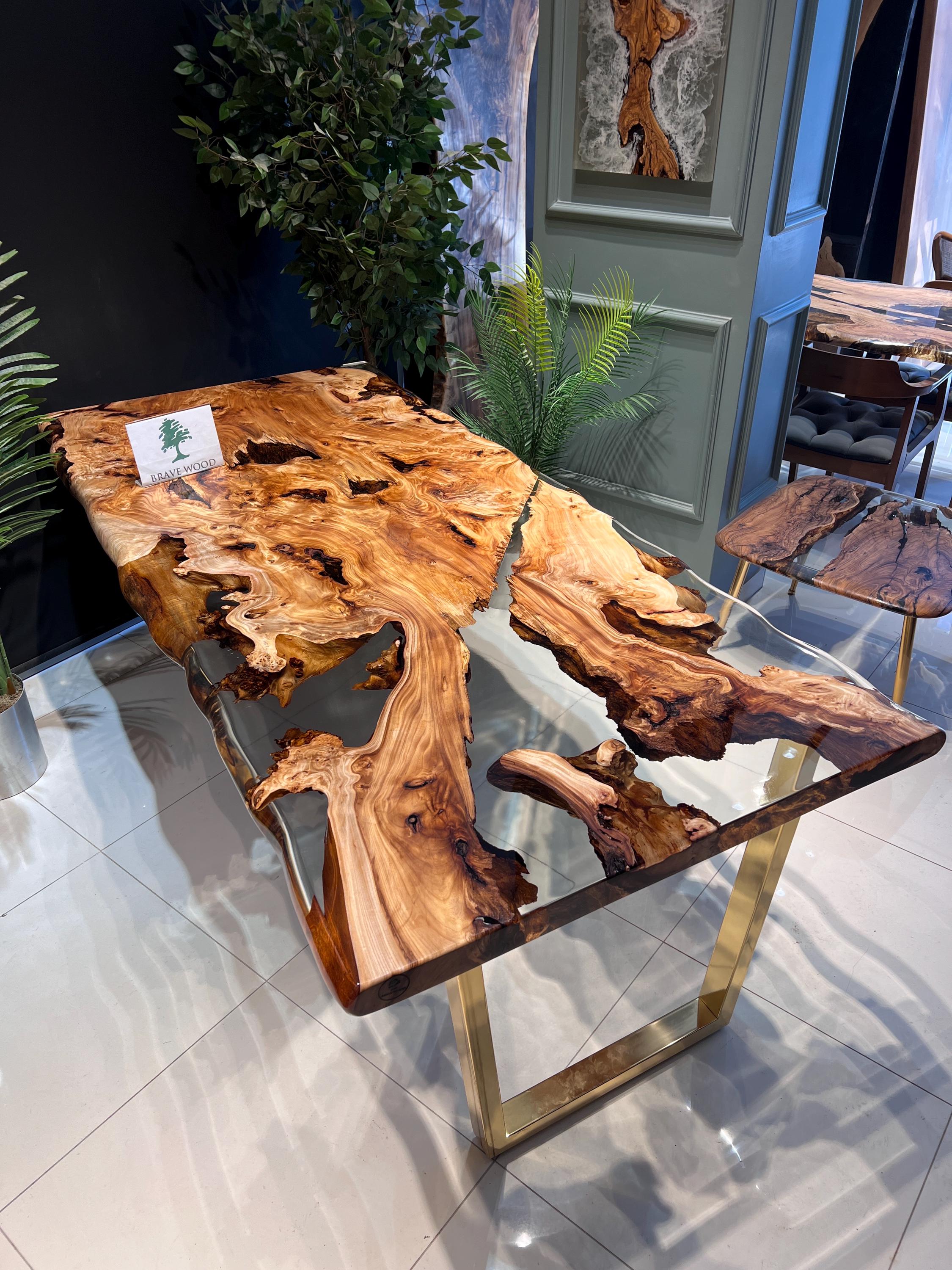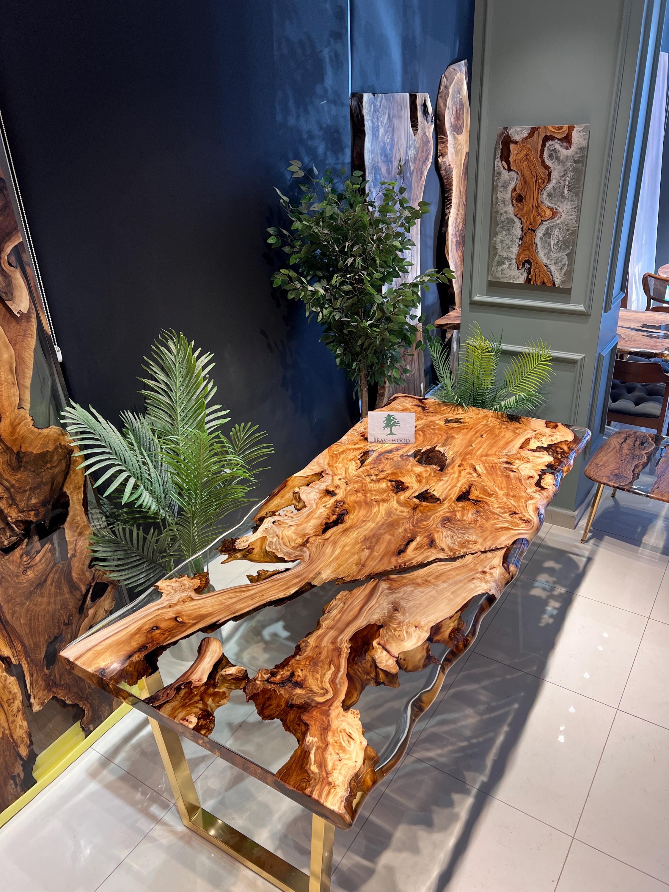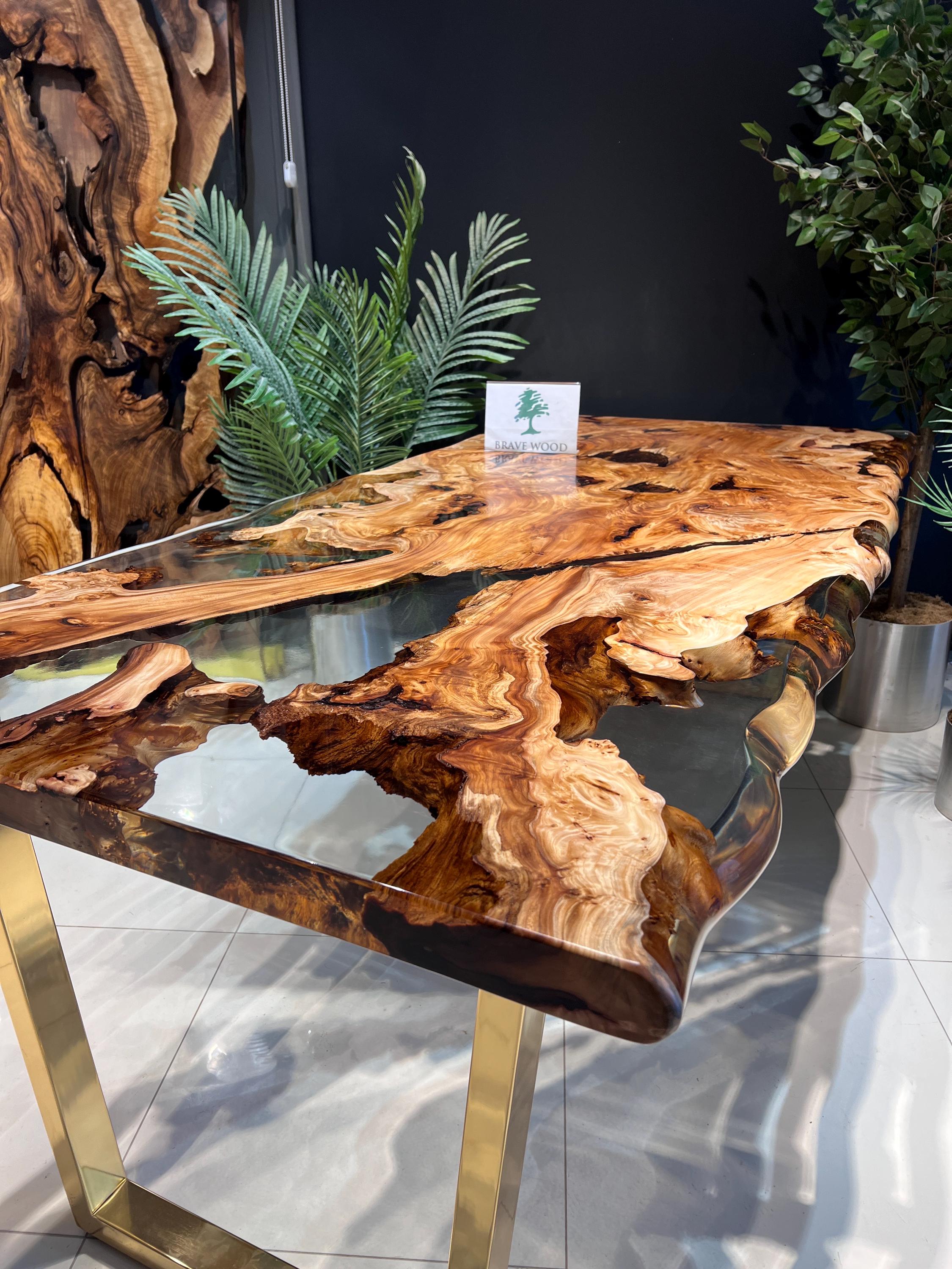 The natural edges of the tree are unique with ultra-transparent epoxy