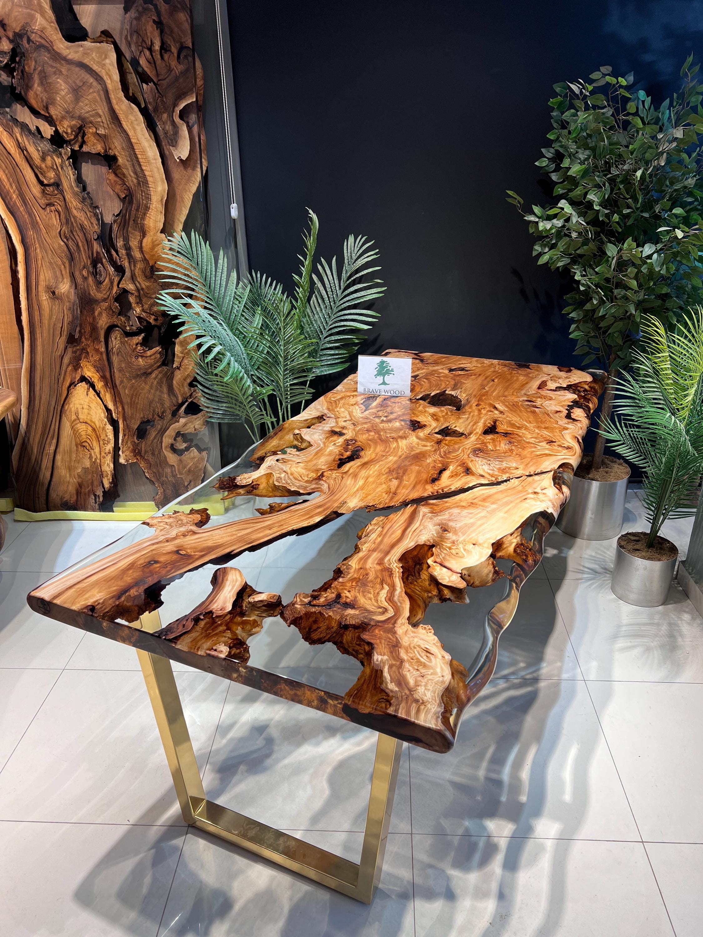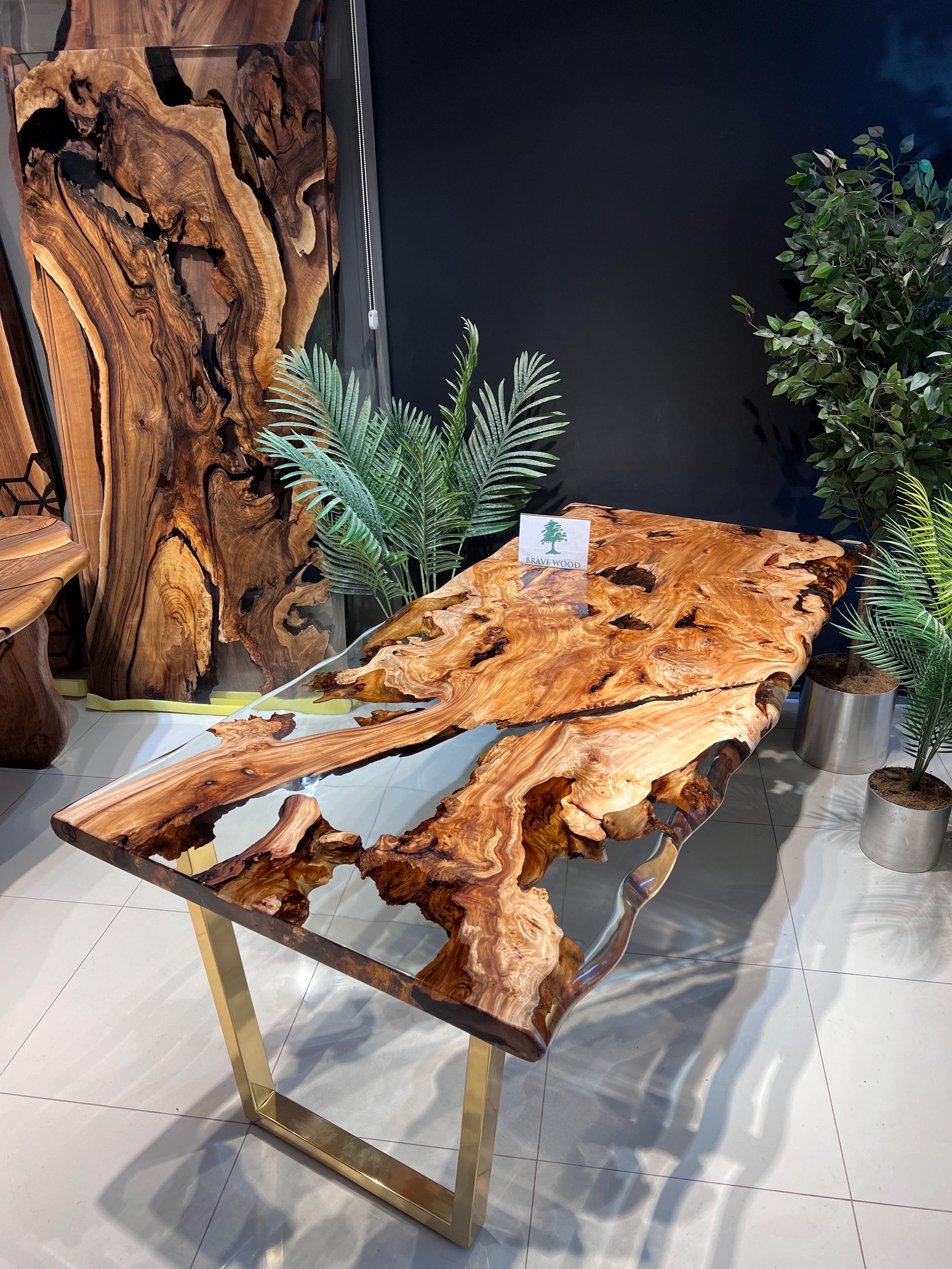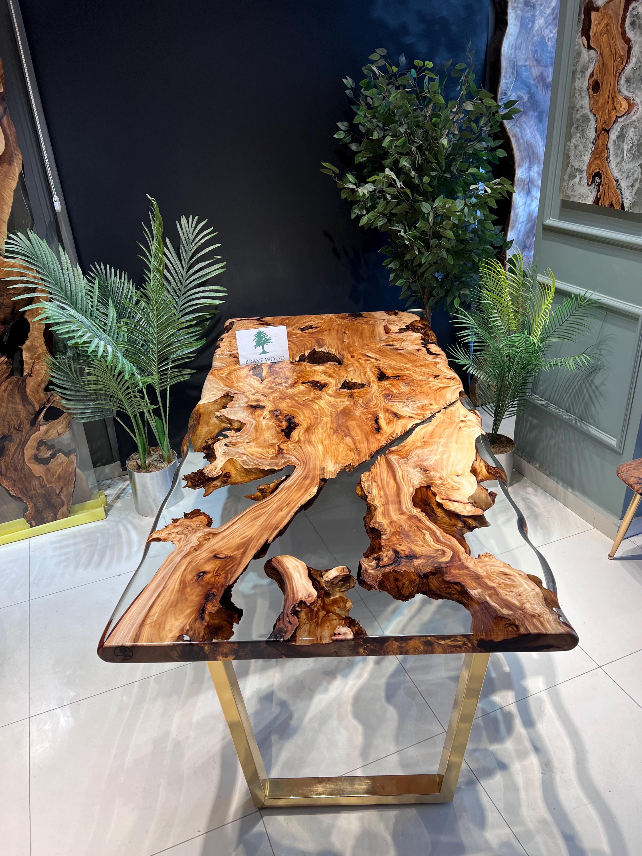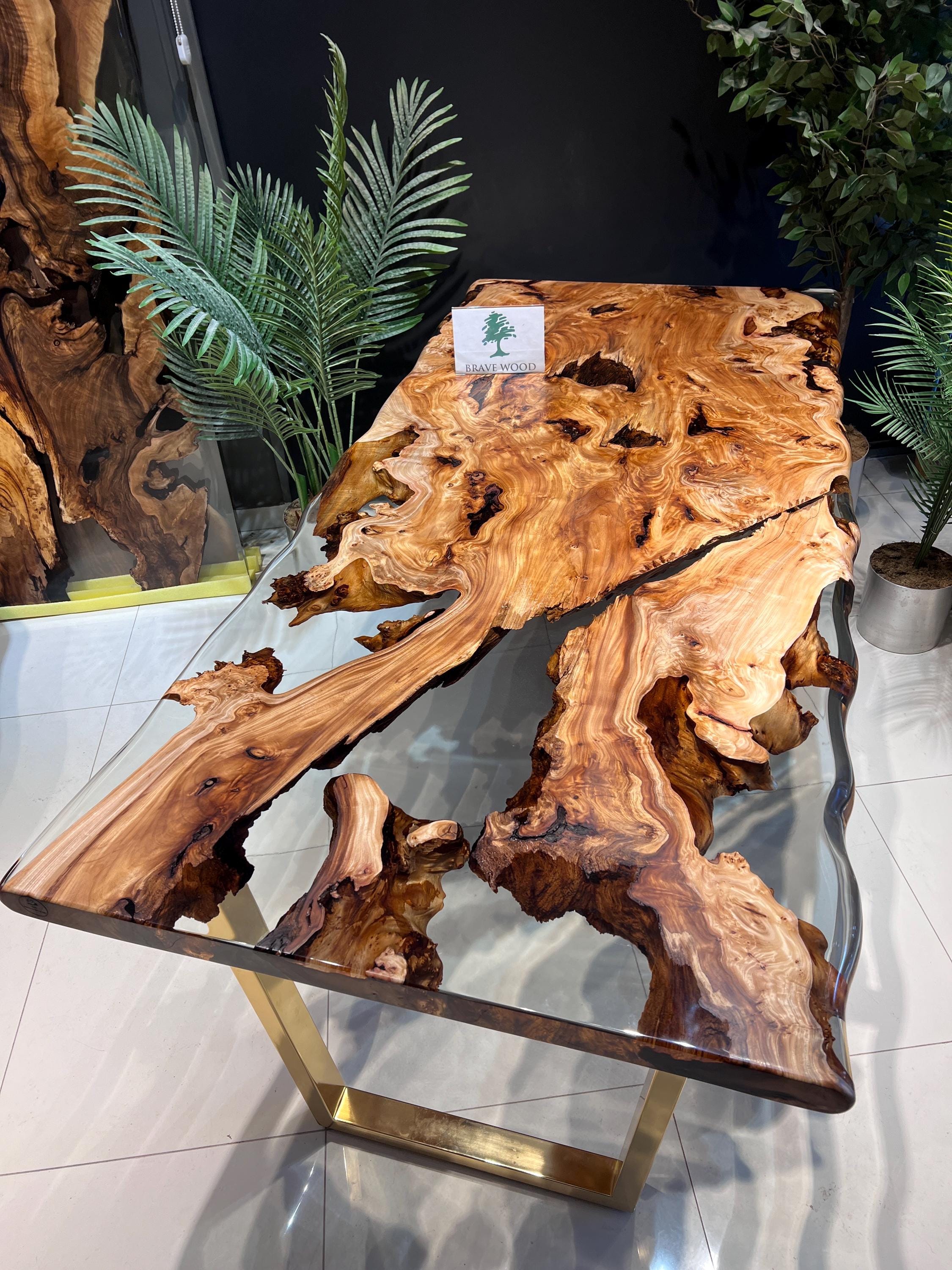 The natural edges of the tree are unique with ultra-transparent epoxy