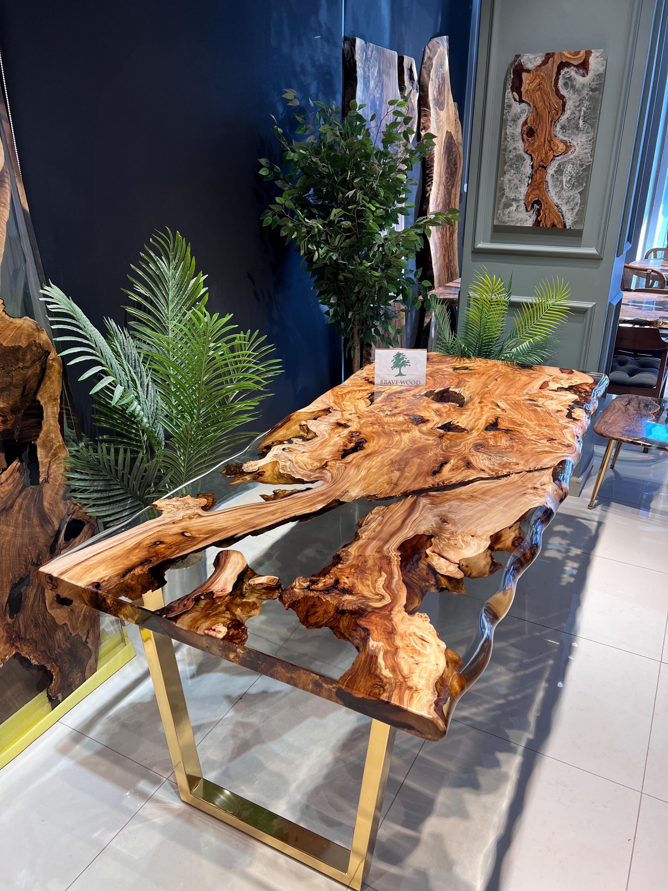 Dining Table for your living room or kitchen. Custom made wood dining table with clear epoxy like river pattern. Unique, special design with soft edges and handmade production just for you, your home and your kitchen.