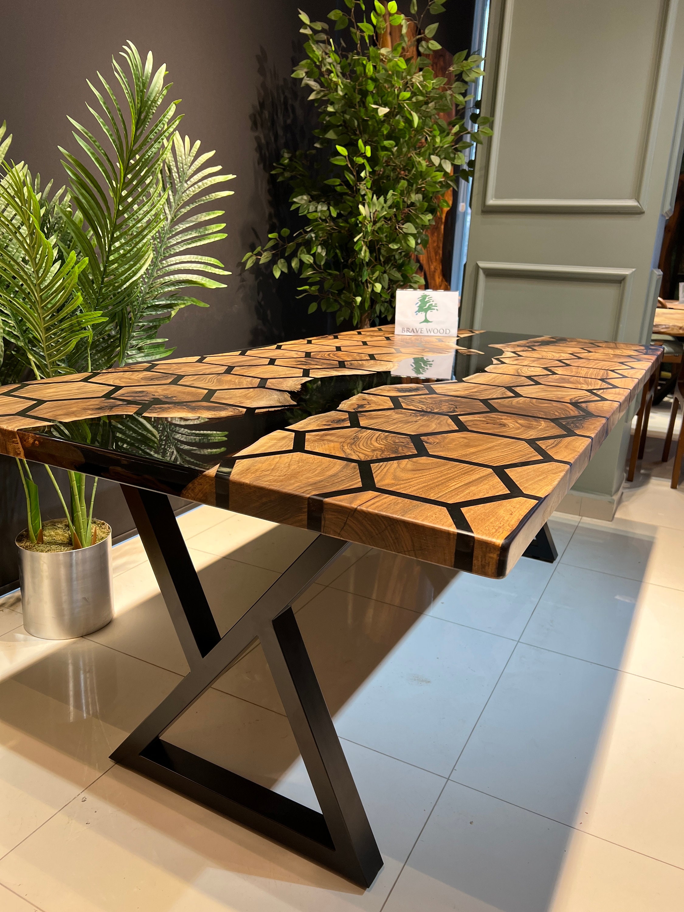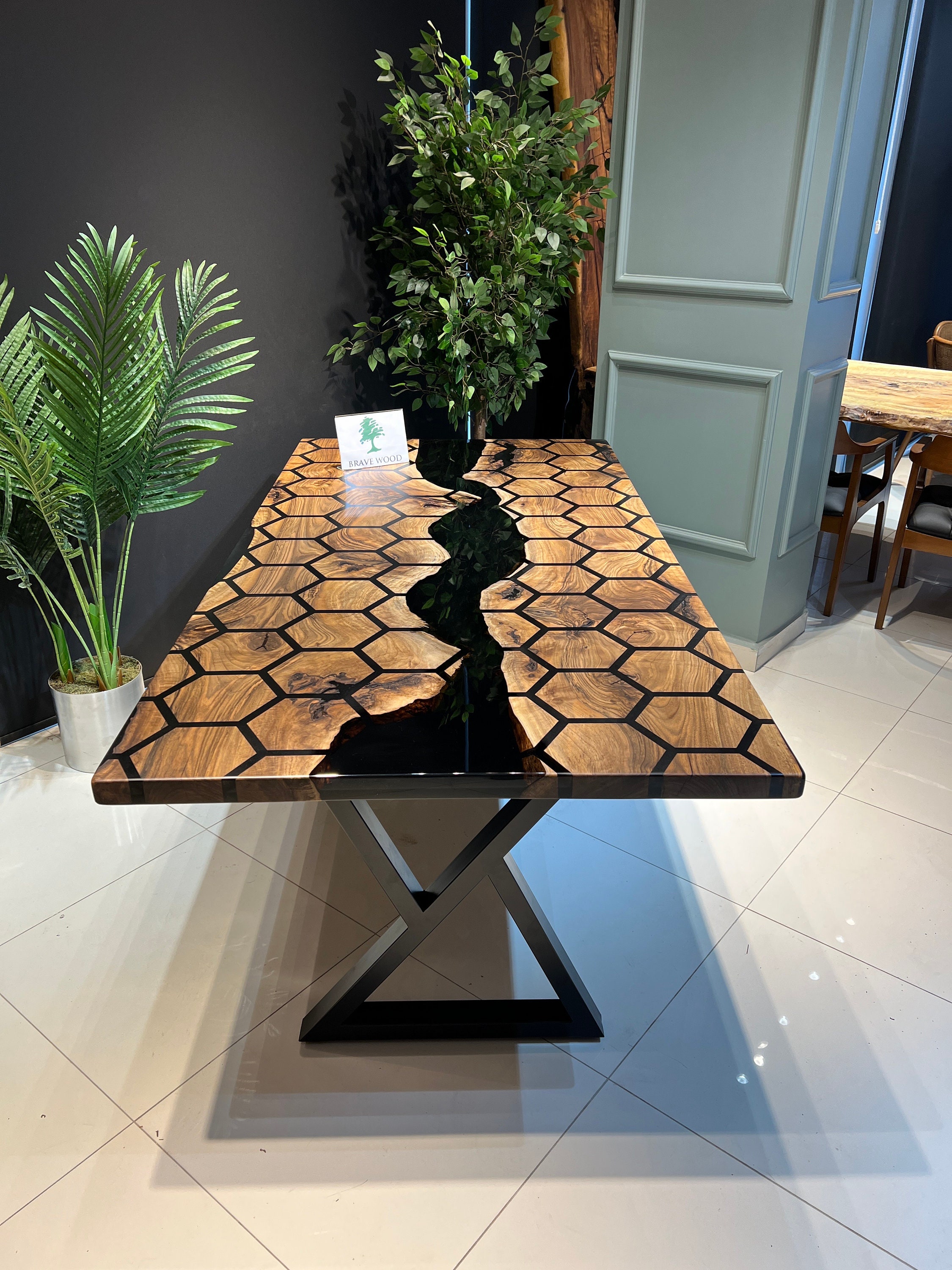 Dining table with ultra clear epoxy
