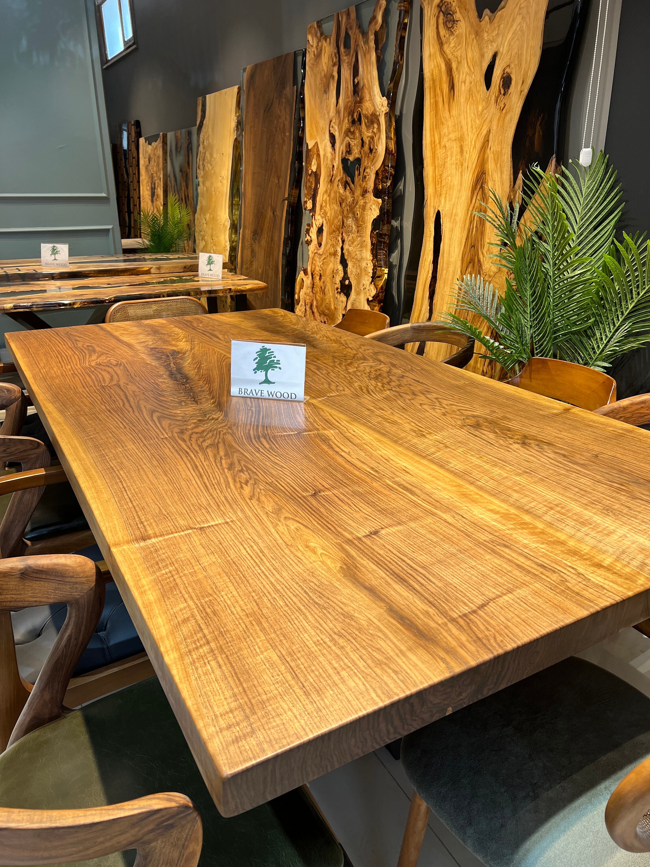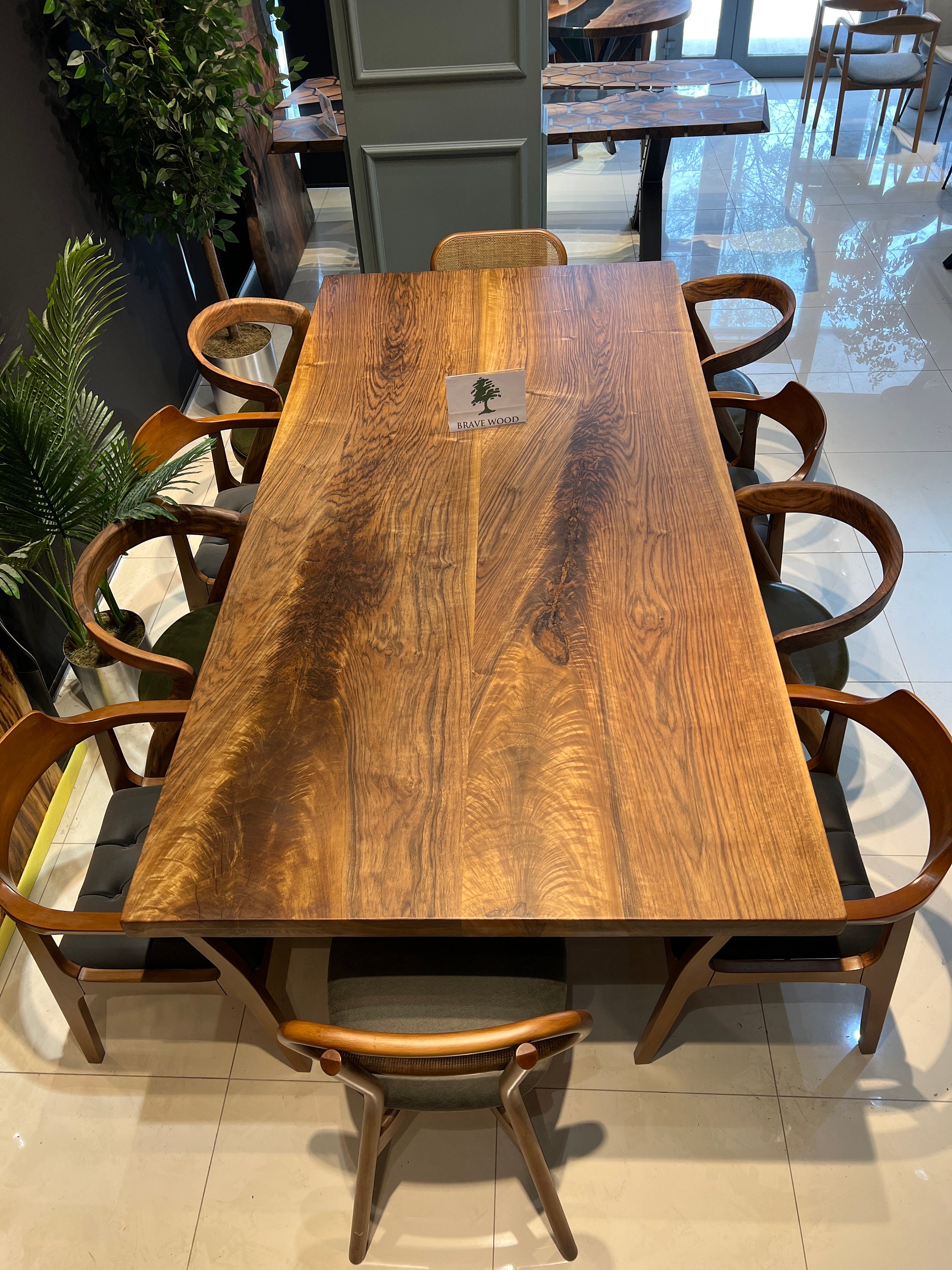 Walnut Dining Table for your living room or kitchen. Custom made walnut wood dining table with dark brown patterns. For this table, we combine two or three part of three together. Unique, special design with soft edges and handmade production just for you, your home and your kitchen.