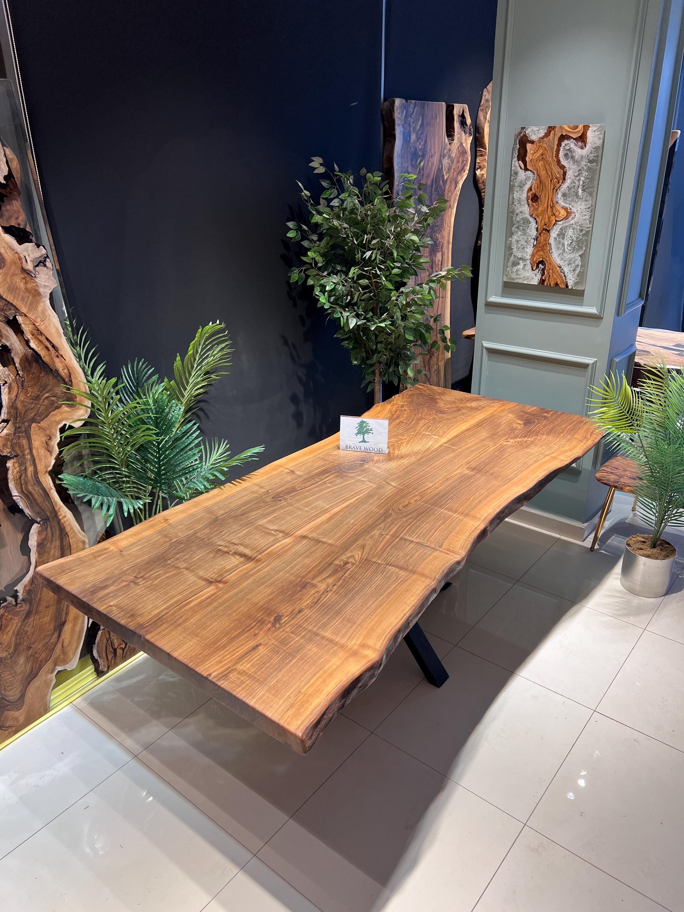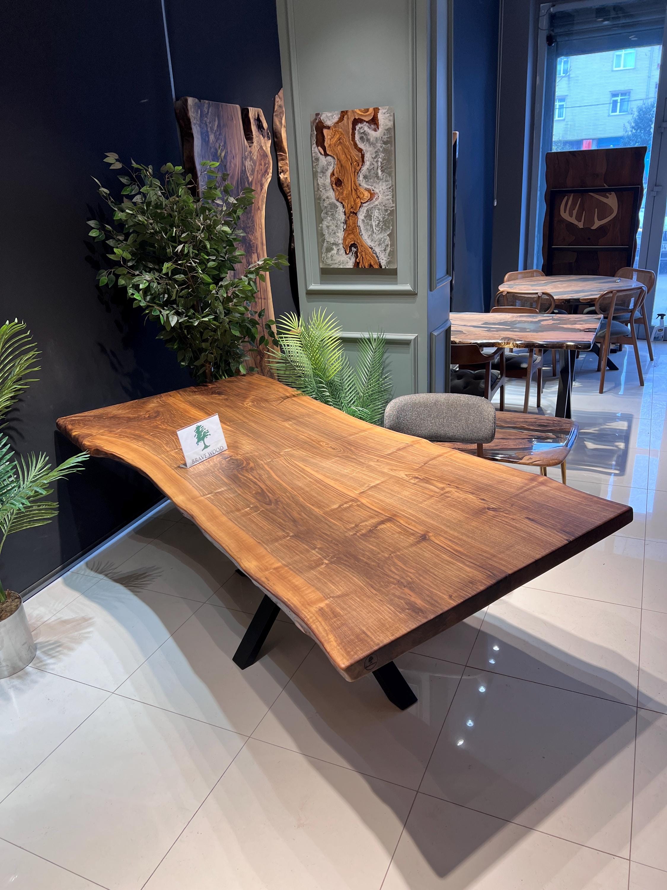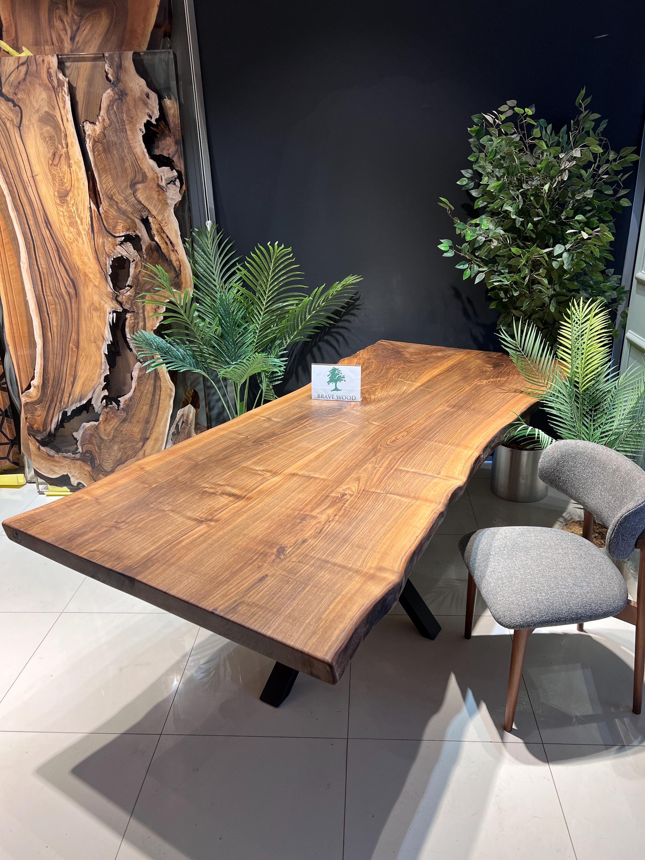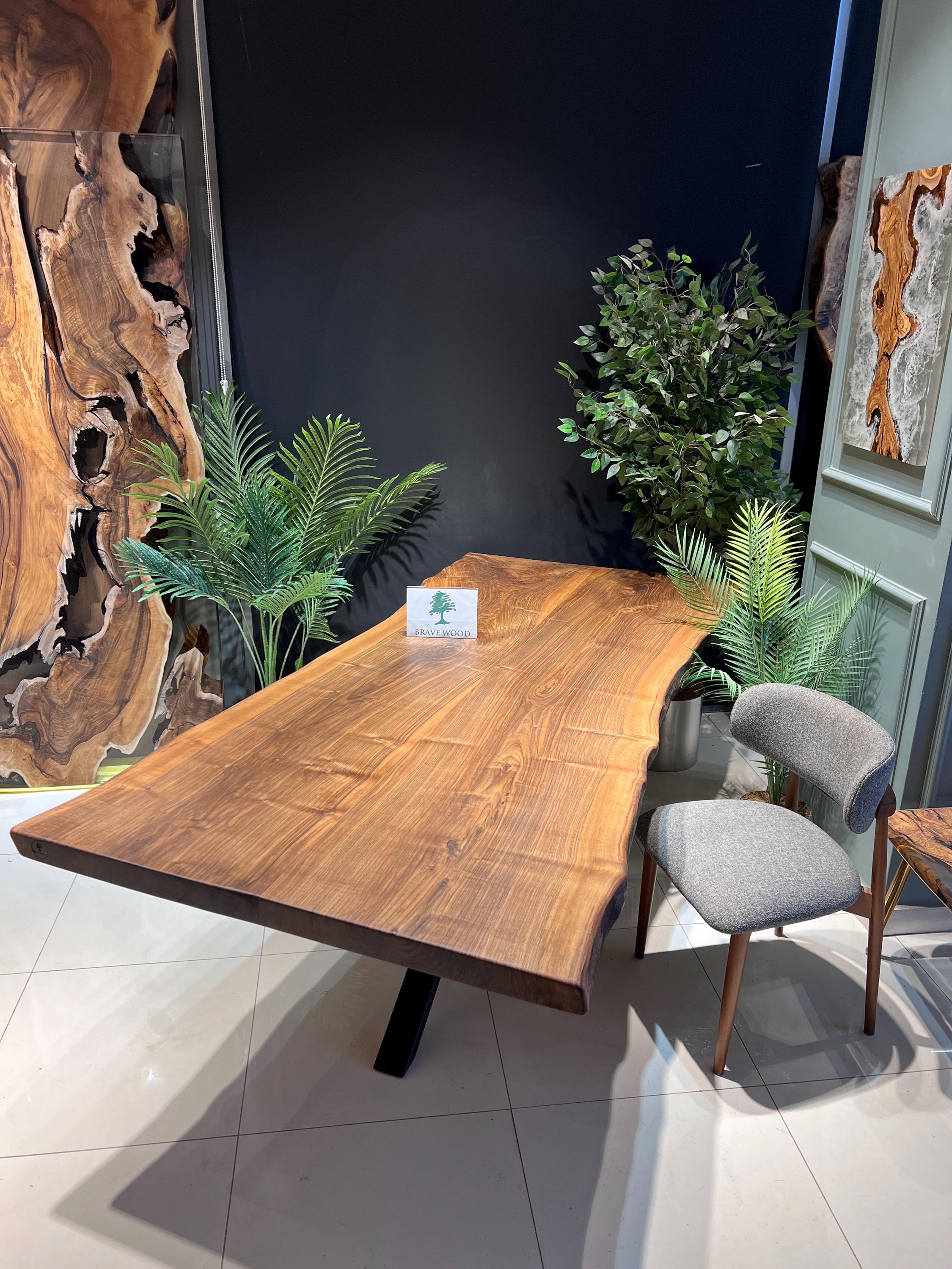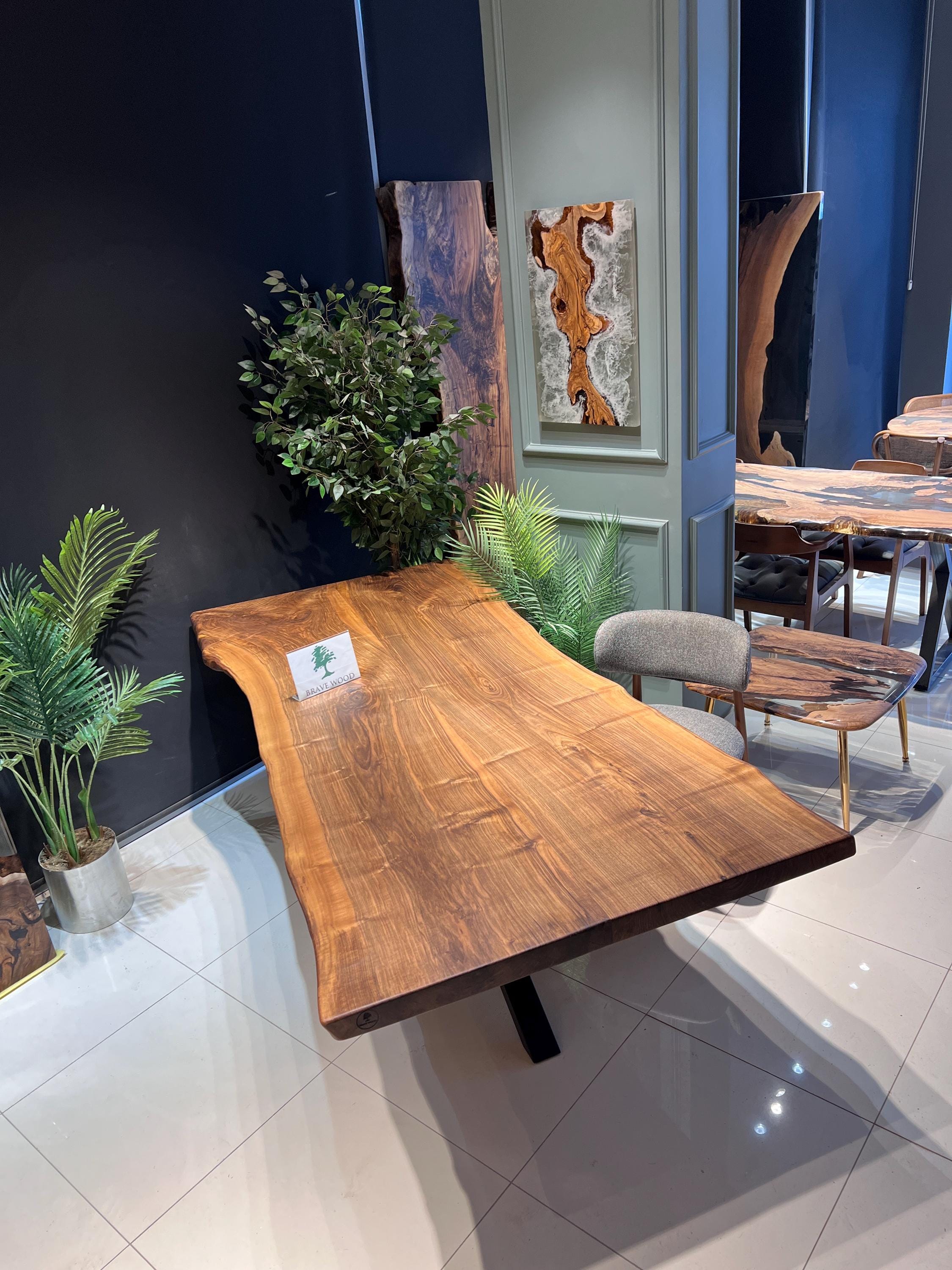 Walnut Dining Table for your living room or kitchen. Custom made walnut wood dining table with dark brown patterns. For this table, we combine two or three part of three together. Unique, special design with soft edges and handmade production just for you, your home and your kitchen.