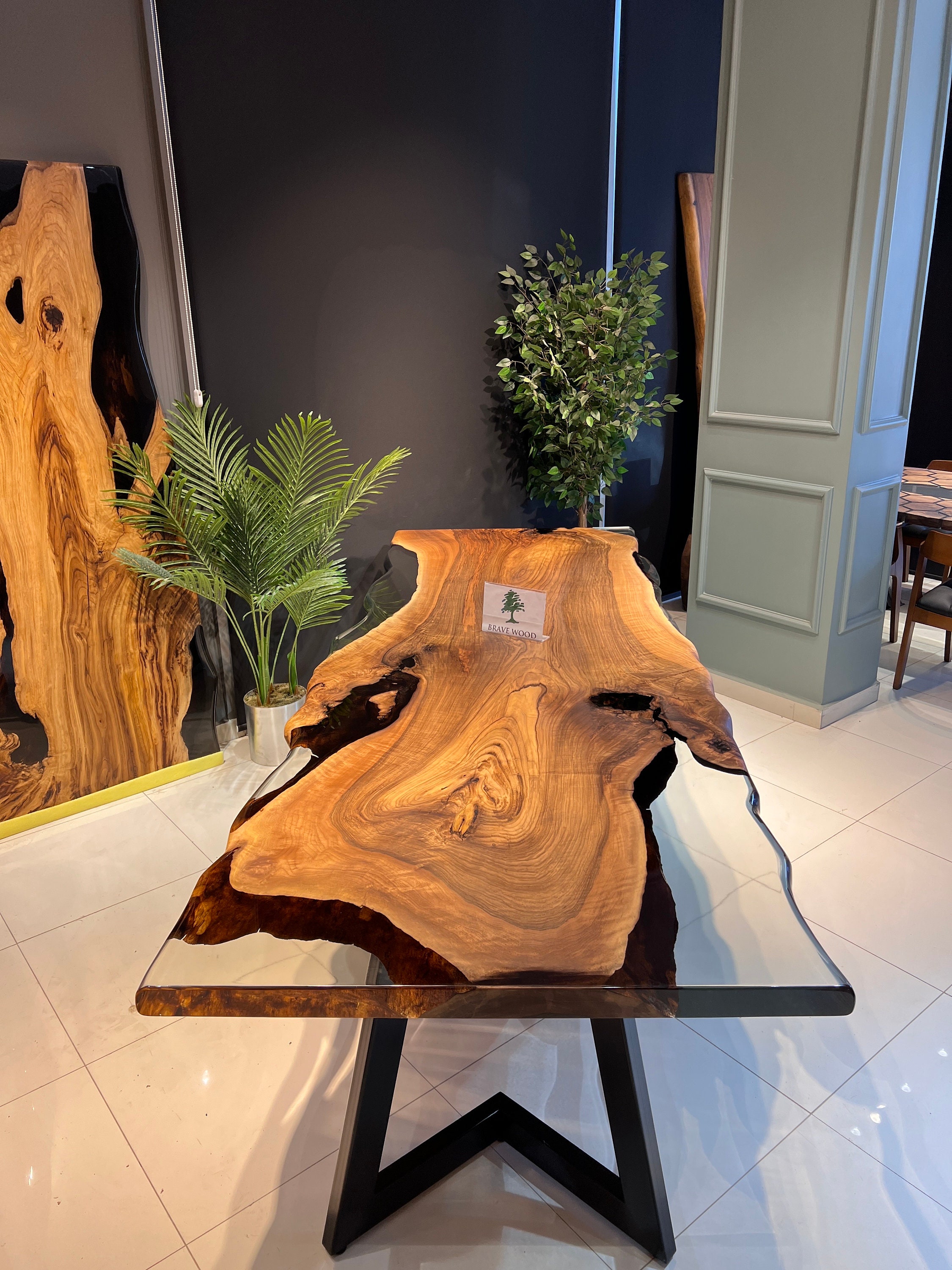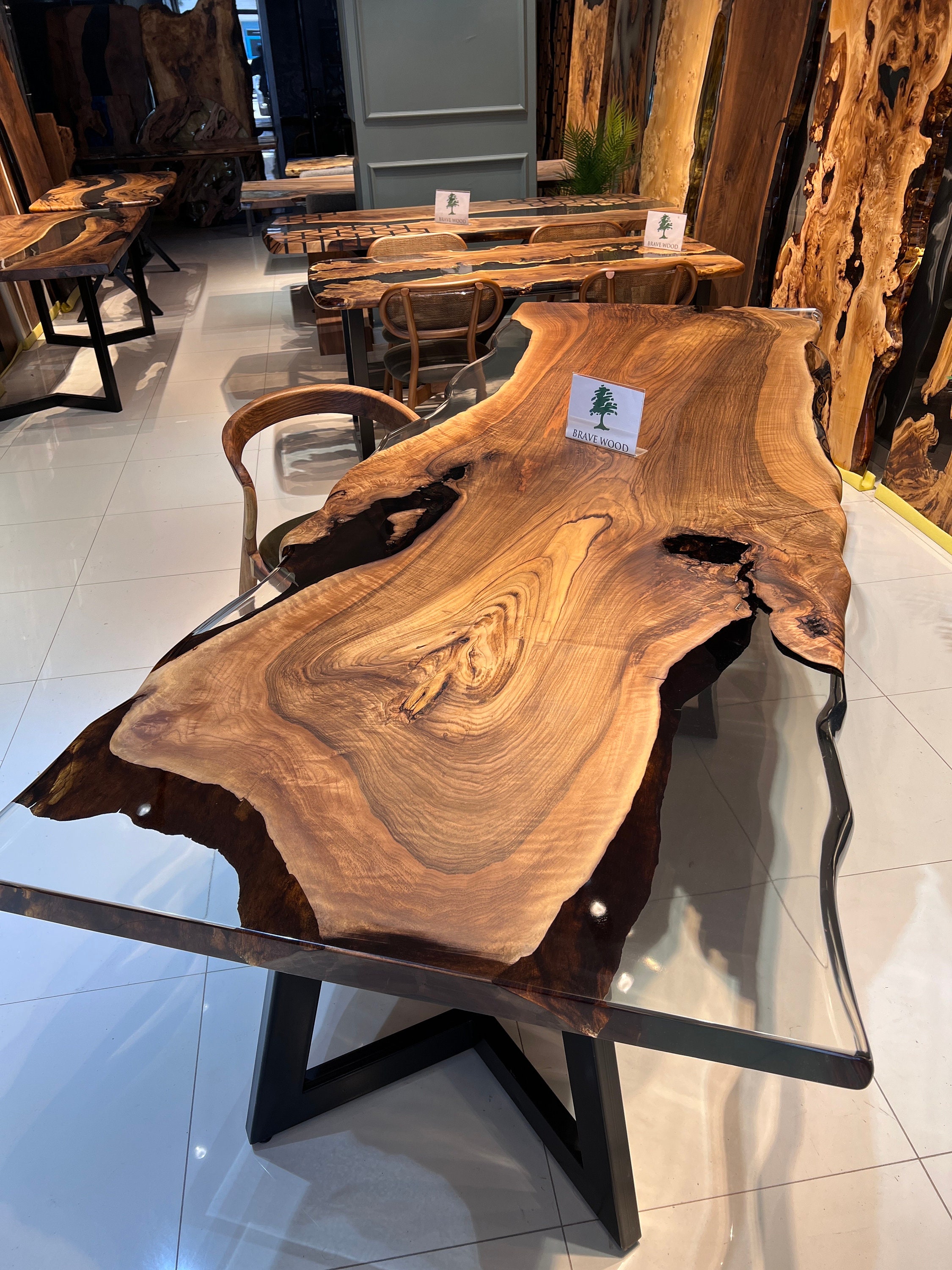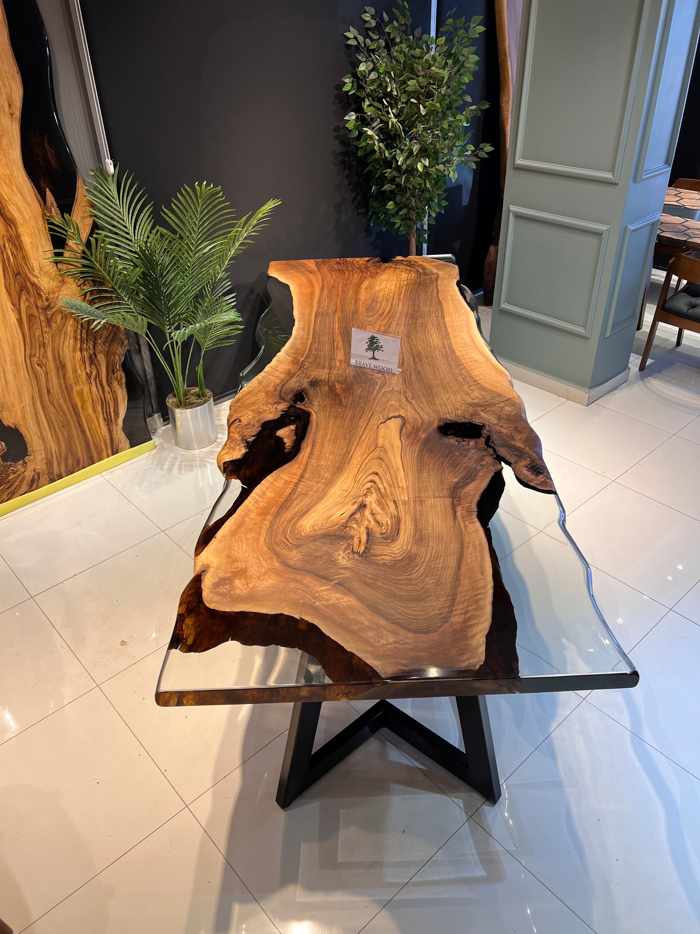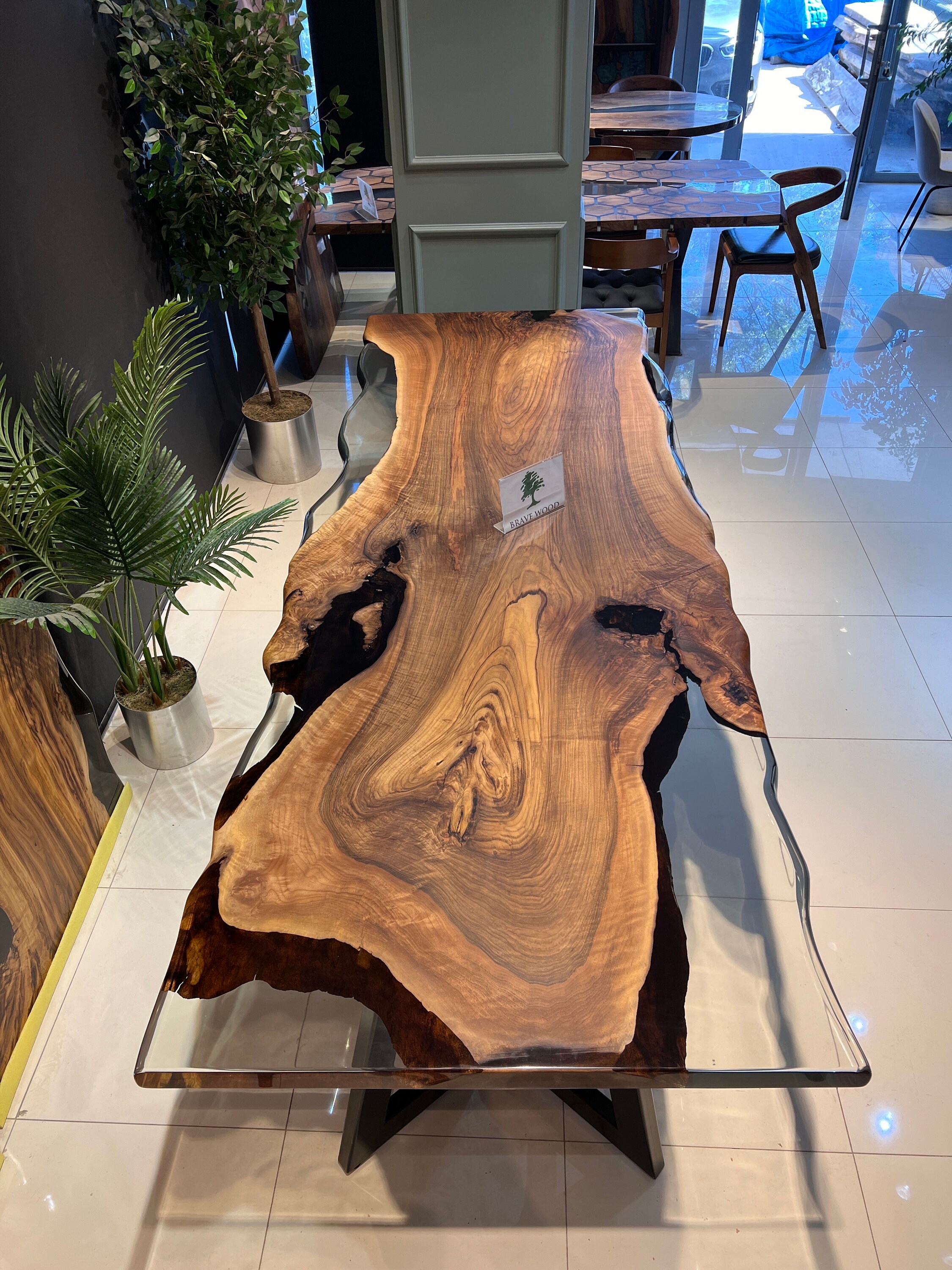 Dining Table for your living room or kitchen. Custom made wood dining table with clear epoxy like river pattern. Unique, special design with soft edges and handmade production just for you, your home and your kitchen.