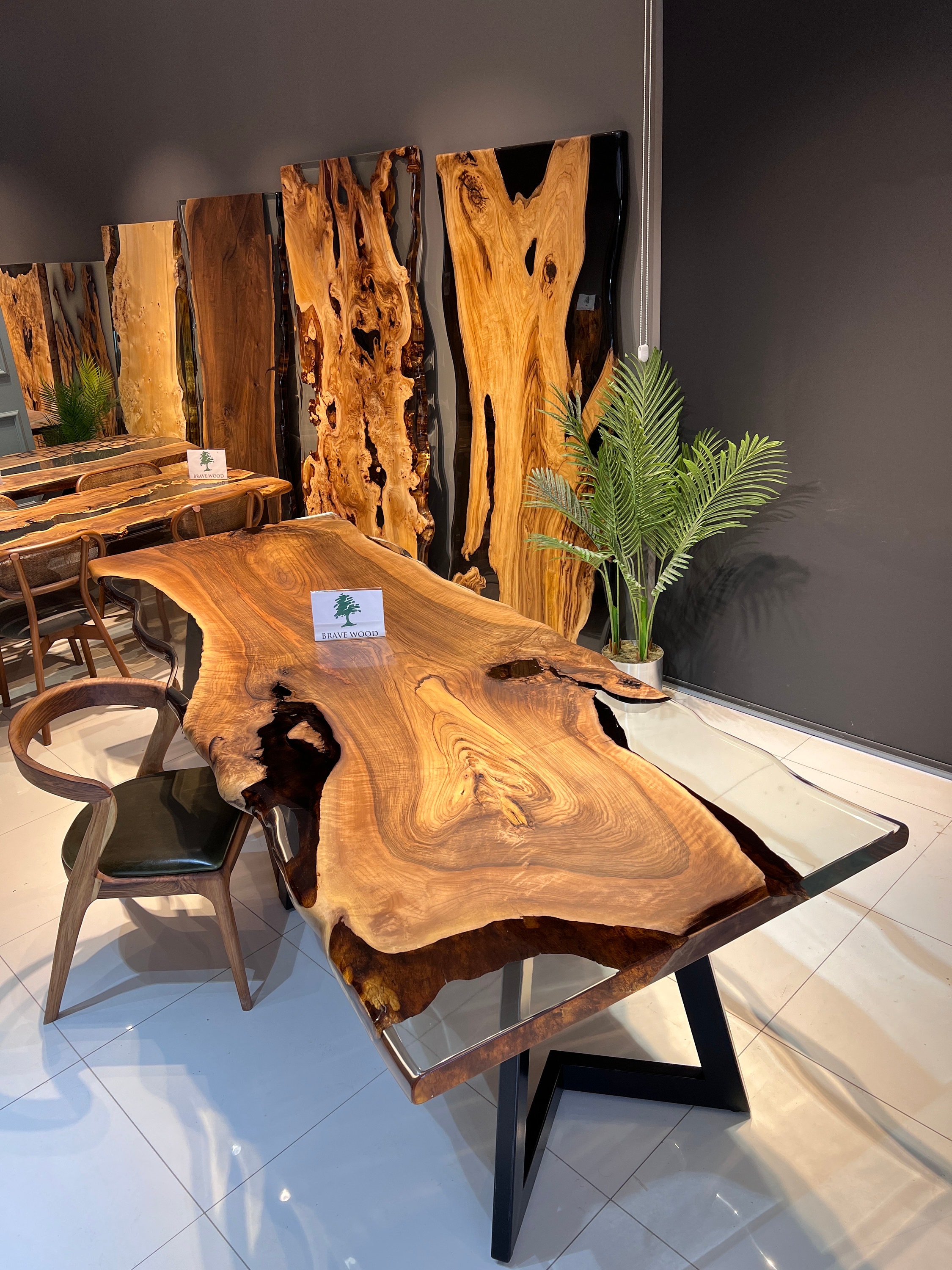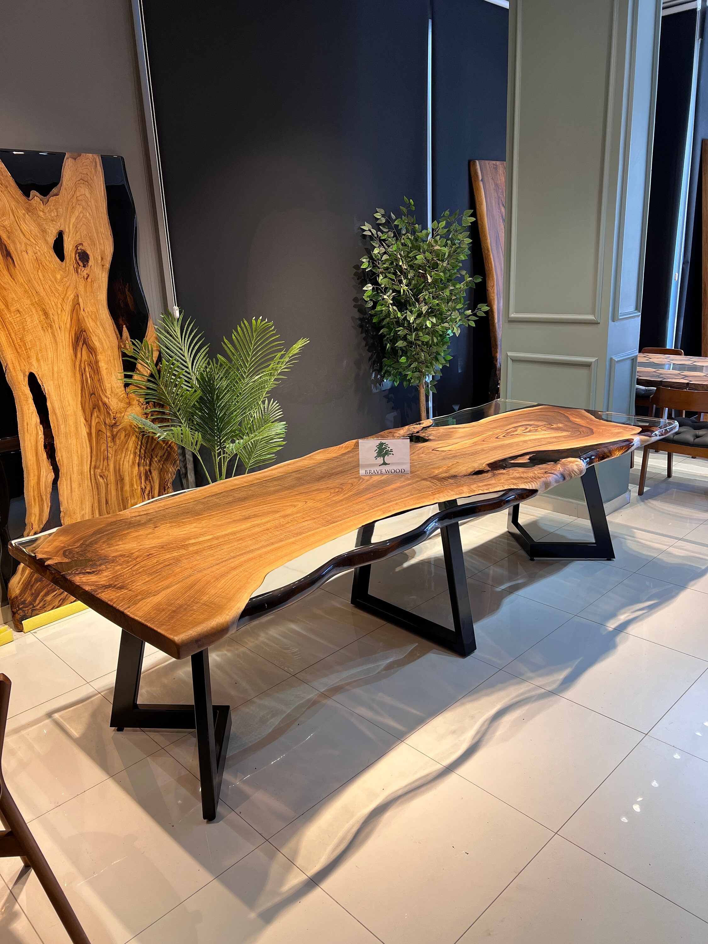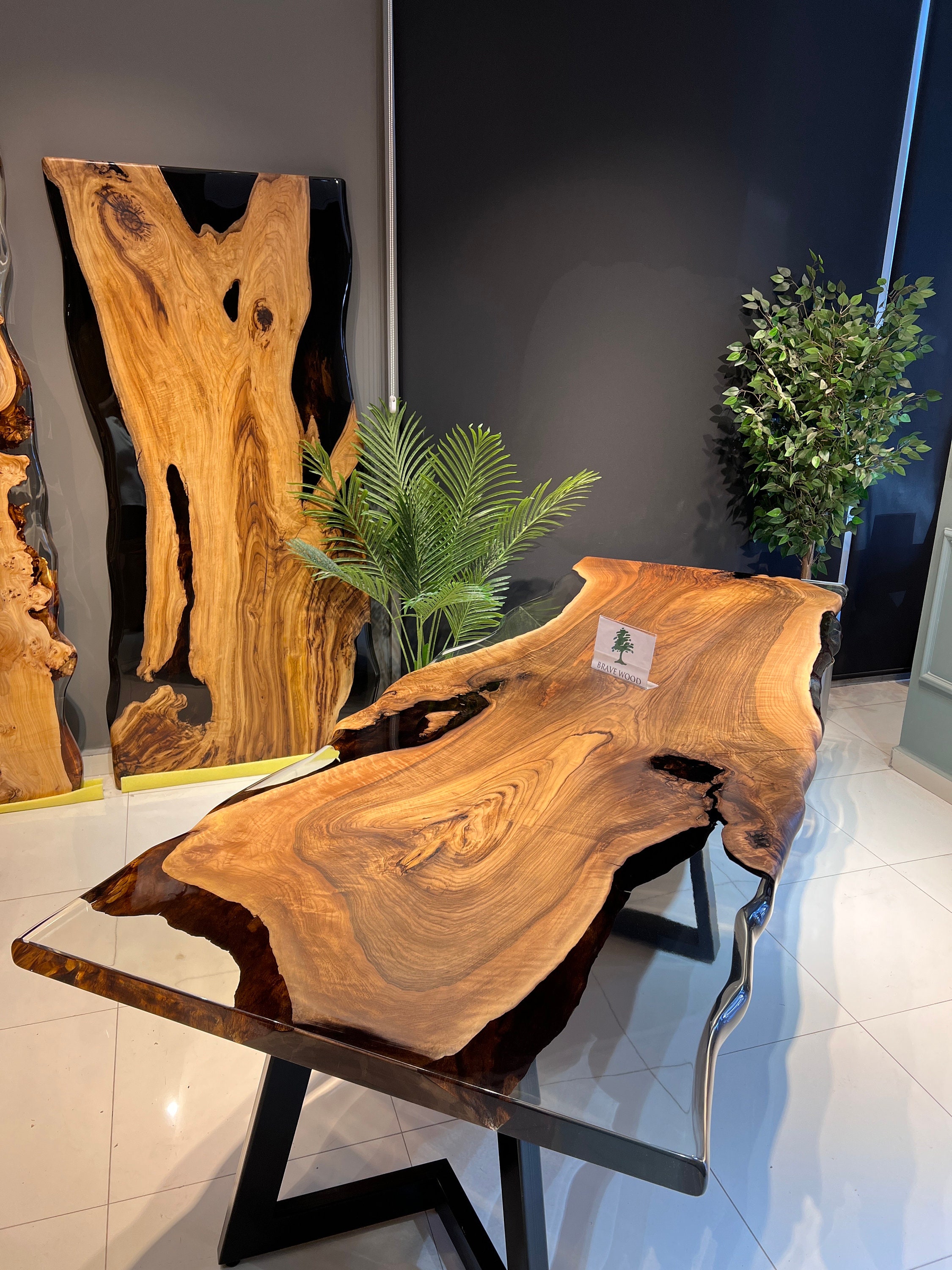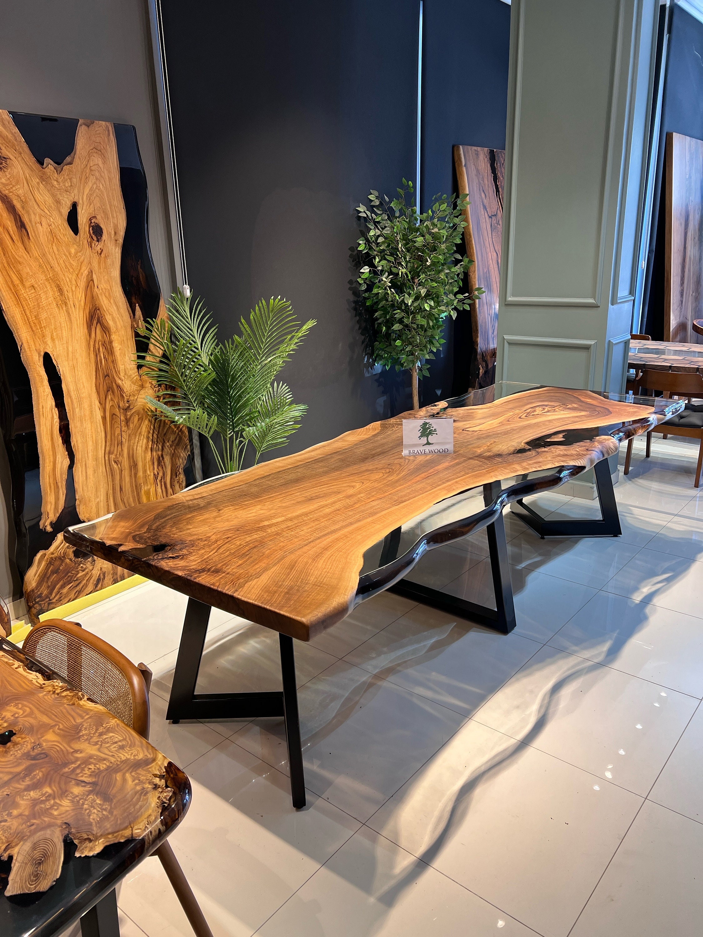 Dining Table for your living room or kitchen. Custom made wood dining table with clear epoxy like river pattern. Unique, special design with soft edges and handmade production just for you, your home and your kitchen.