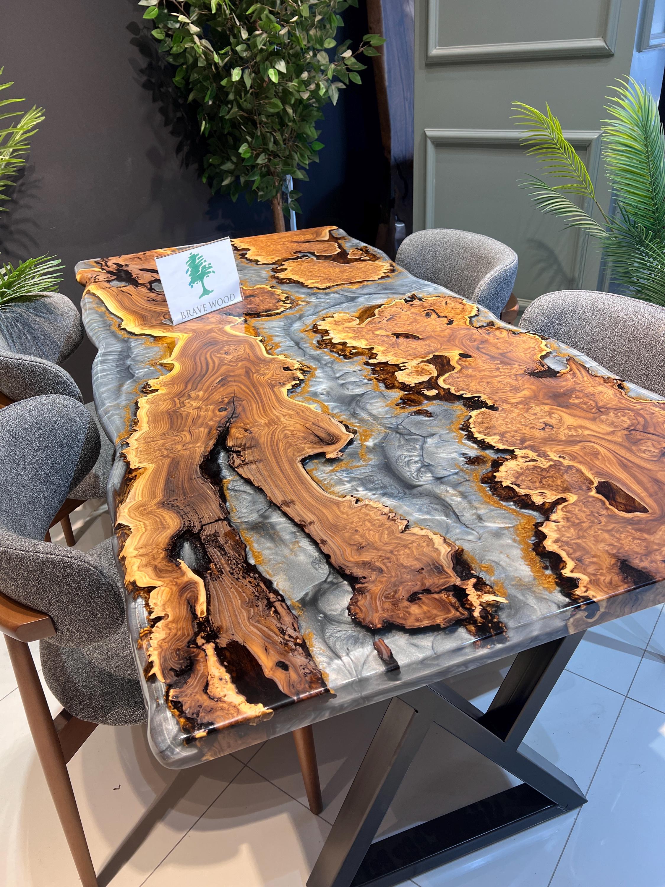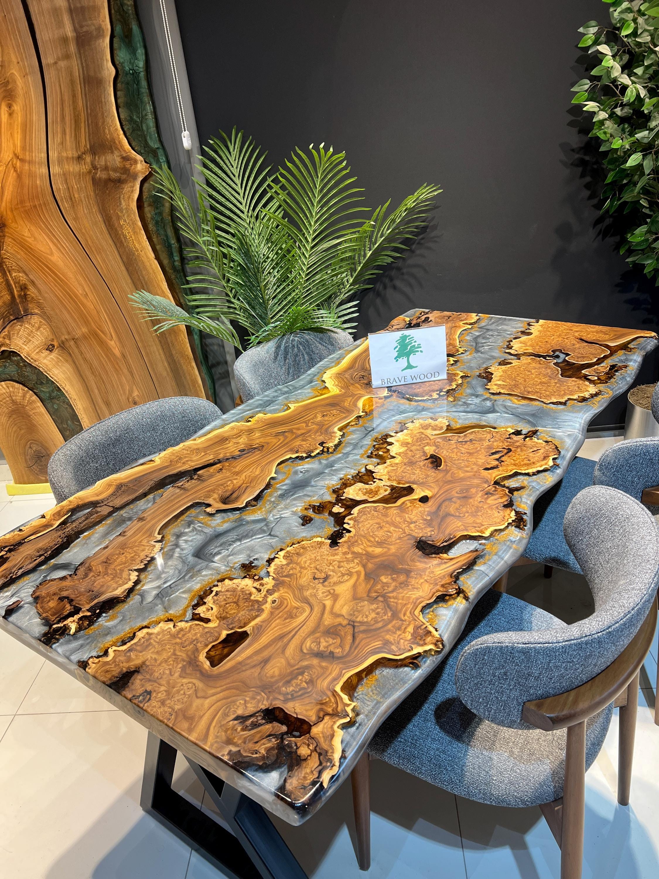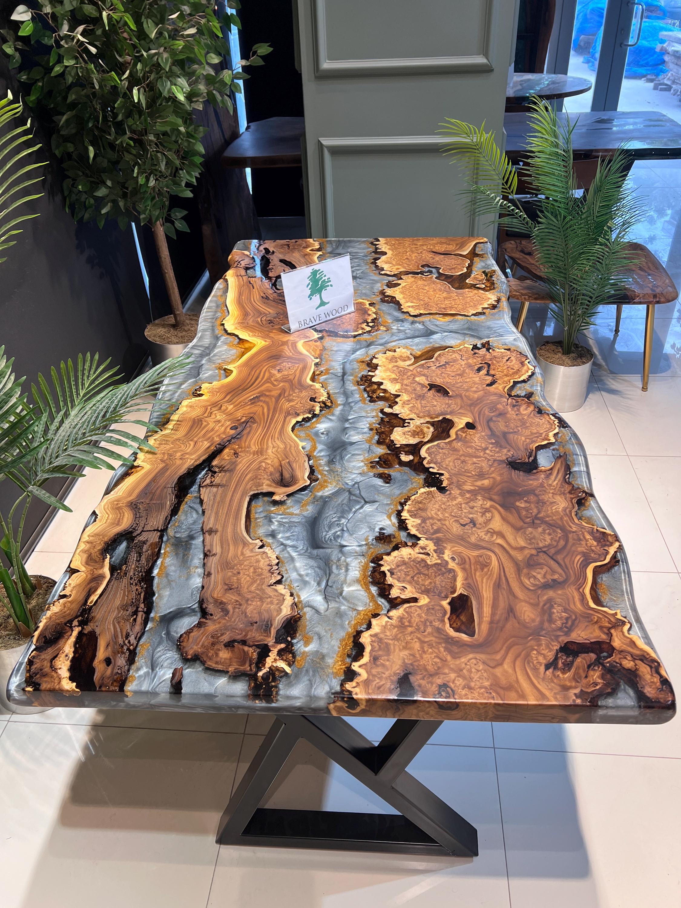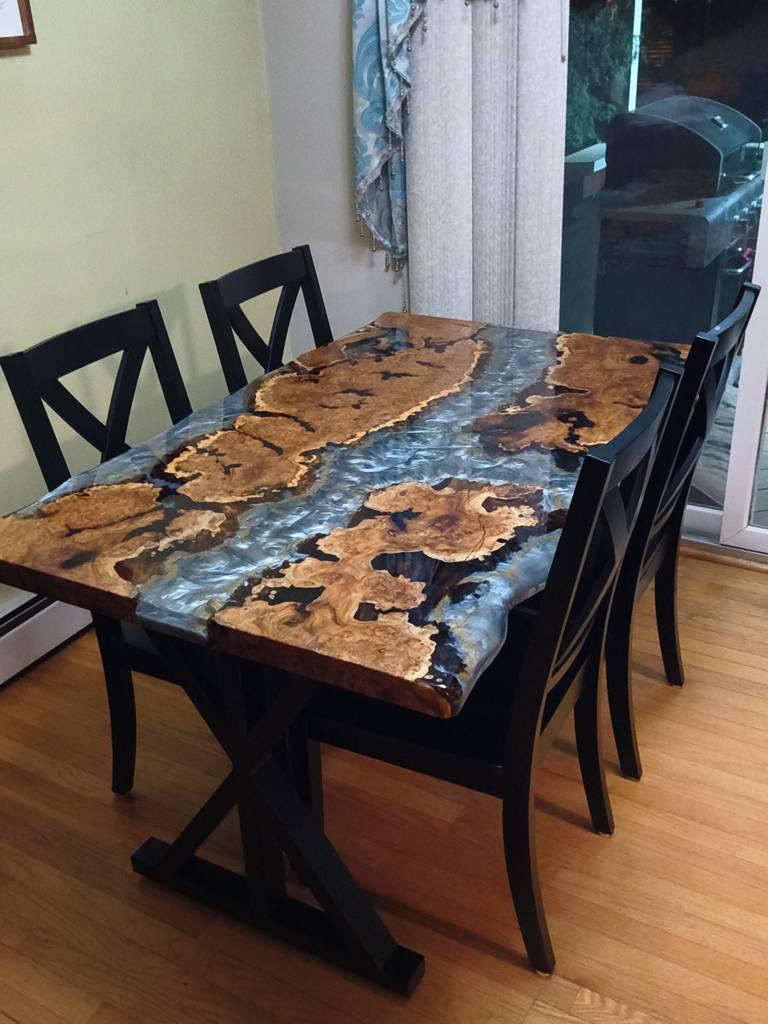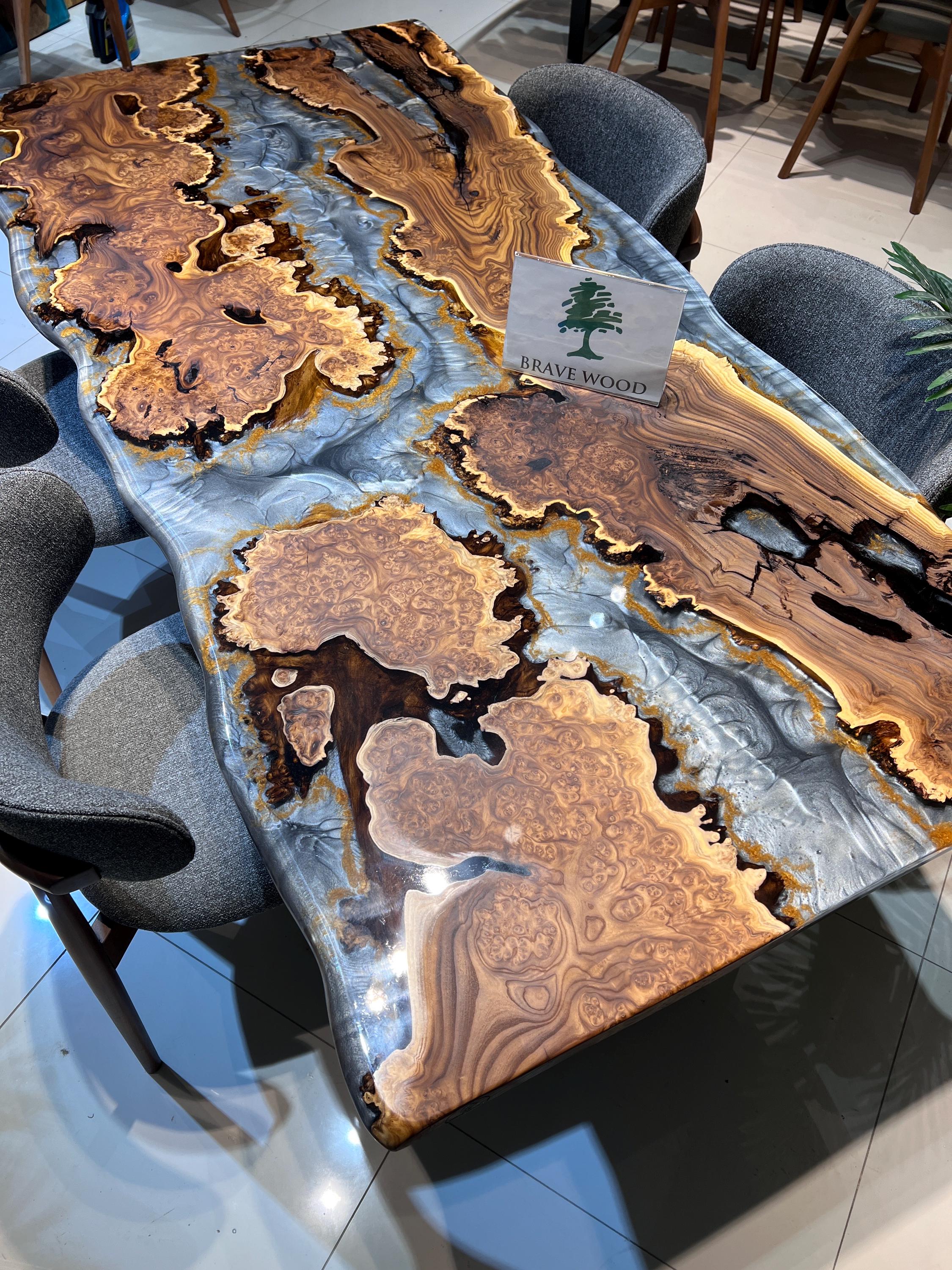 Dining Table for your living room or kitchen. Custom made wood dining table with clear epoxy like river pattern. Unique, special design with soft edges and handmade production just for you, your home and your kitchen.