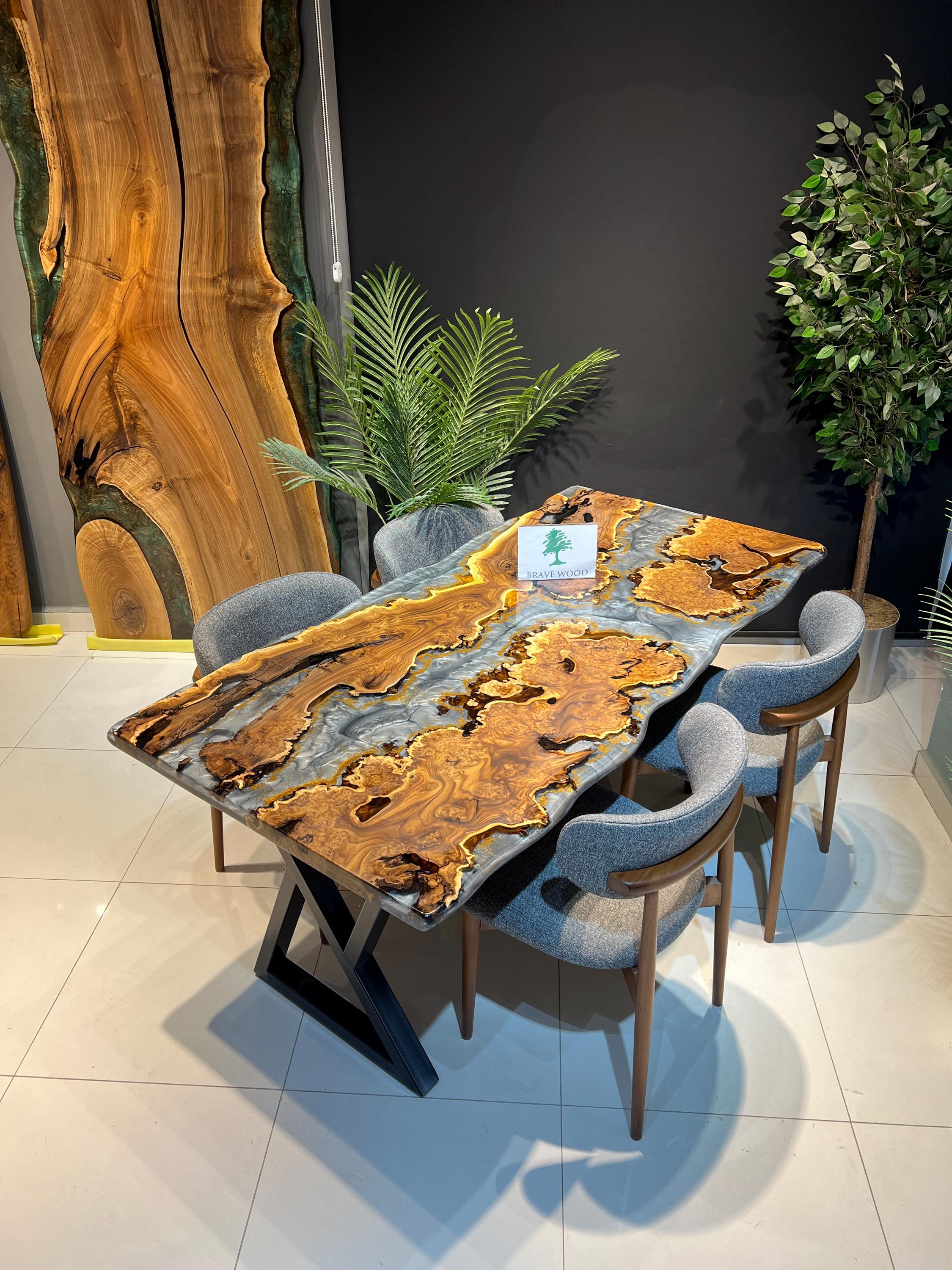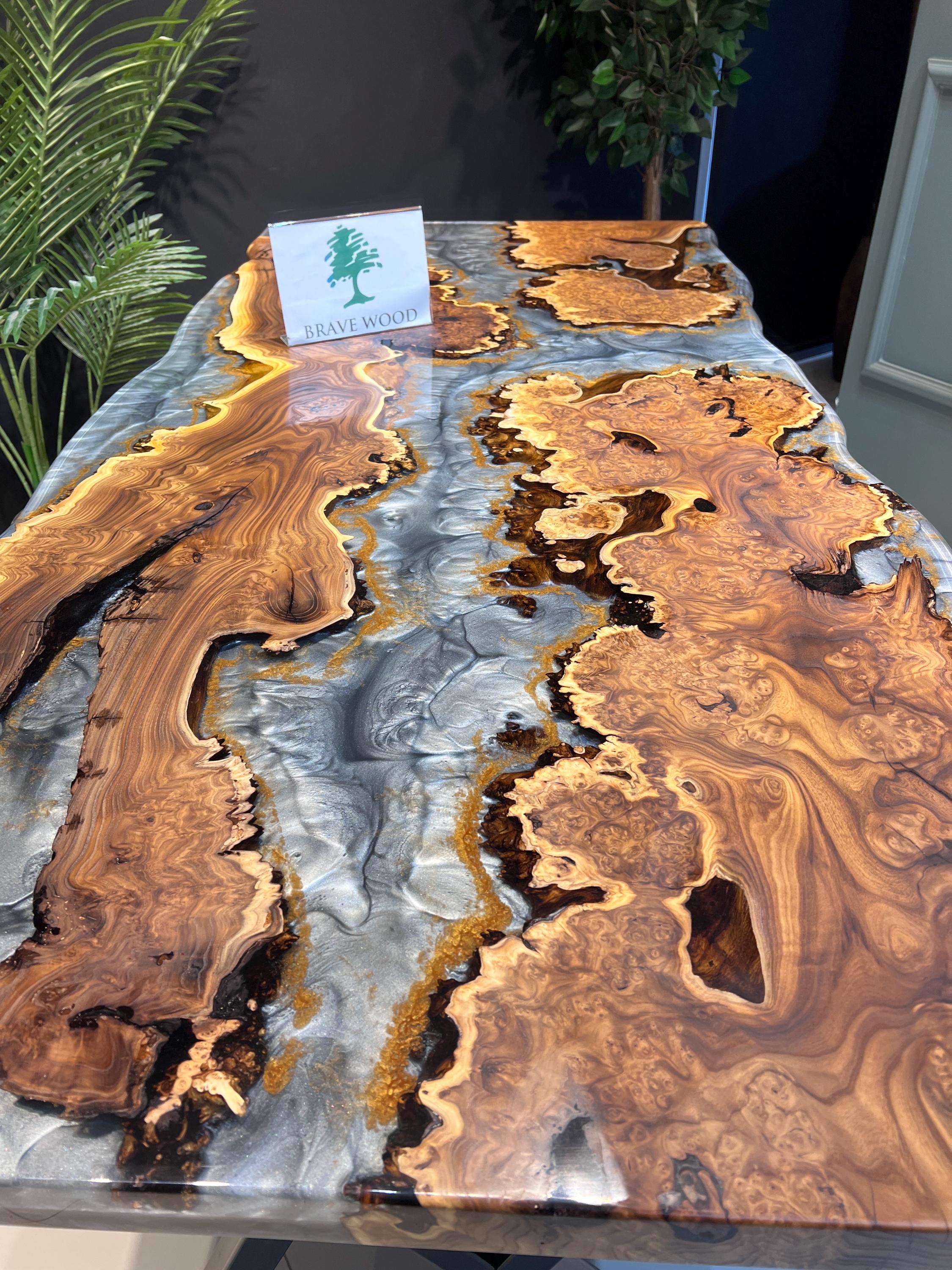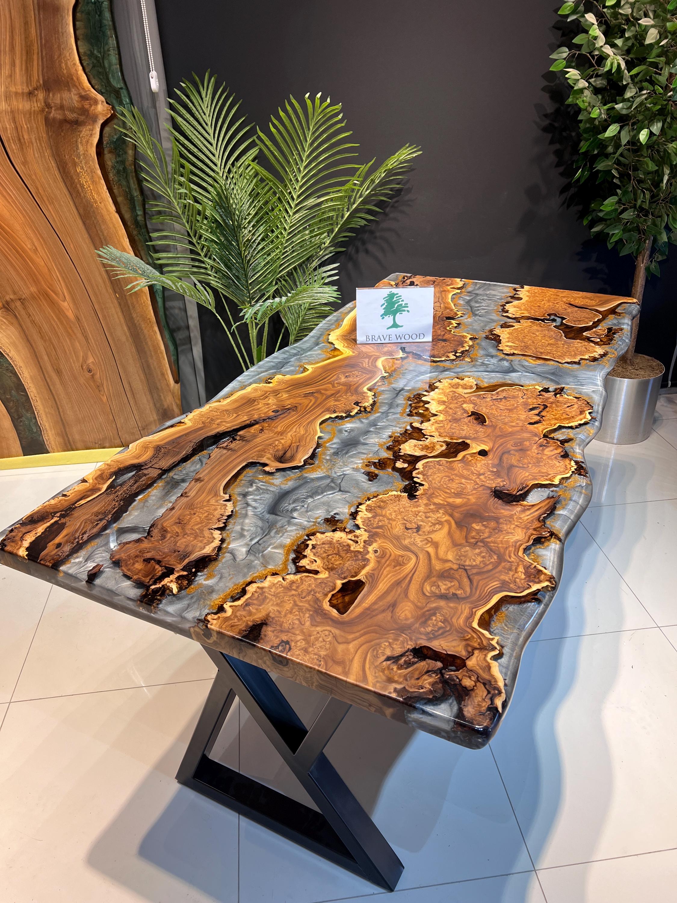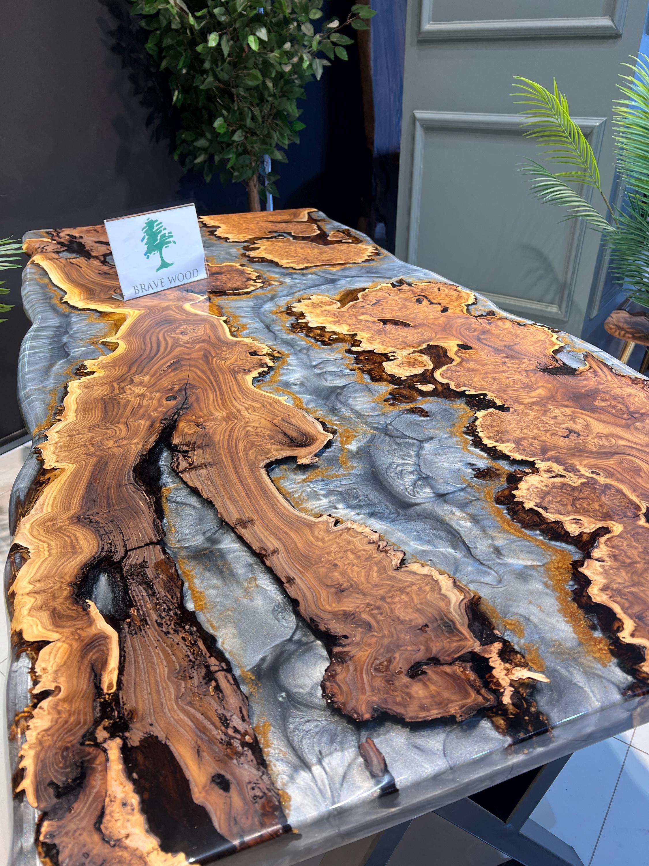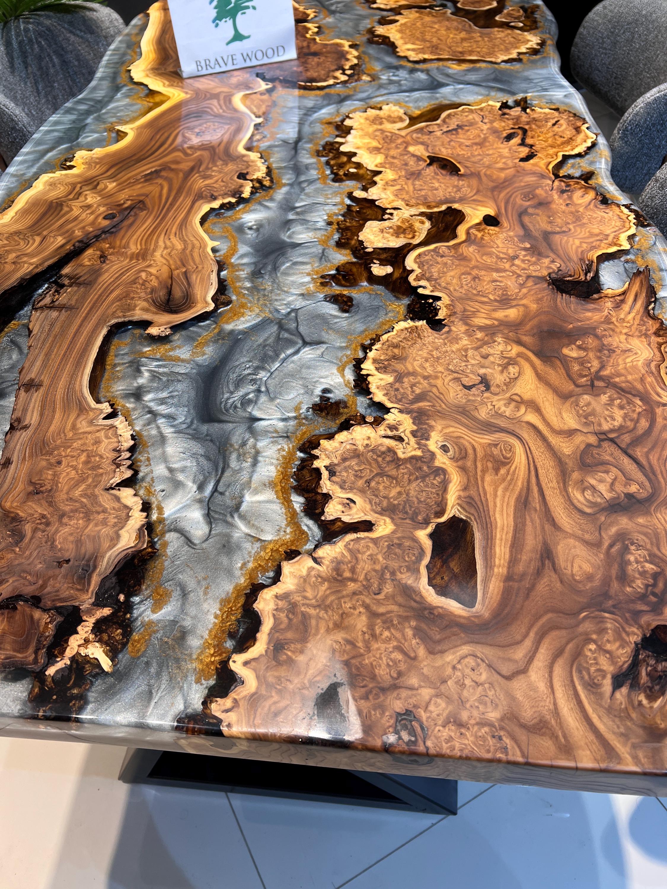 Dining Table for your living room or kitchen. Custom made wood dining table with clear epoxy like river pattern. Unique, special design with soft edges and handmade production just for you, your home and your kitchen.